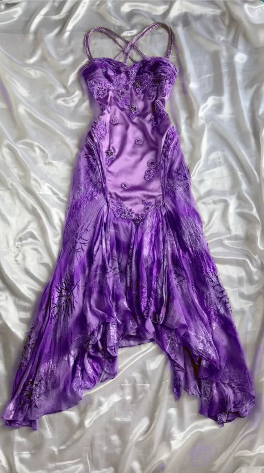 Occasion: Wedding Guest, Formal EveningStyle: Elegant, Beautiful BackSilhouette: A-LineHemline / Train: AsymmetricalNeckline: Boat NeckFabric: SatinClosure: Zipper UPSleeve Length: SleevelessEmbellishment: AppliquesBuilt-In Bra: YesBoning: NoTips: Professional dry cleaner only, Colors may vary slightly due to different monitor settings, Bodice color will be as pictured no matter...