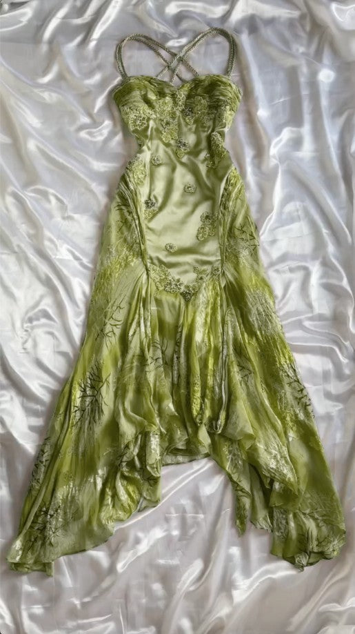 Gold 💛Vintage Prom Dress for Birthday&Party Applique Spaghetti Strap Chiffon Ball Gown ED01676