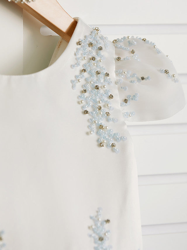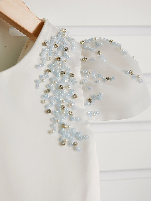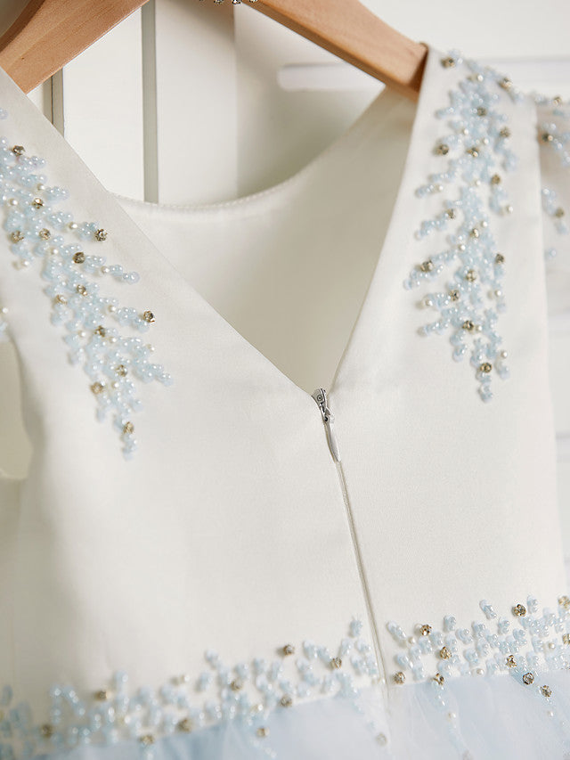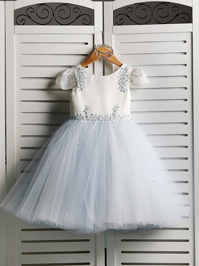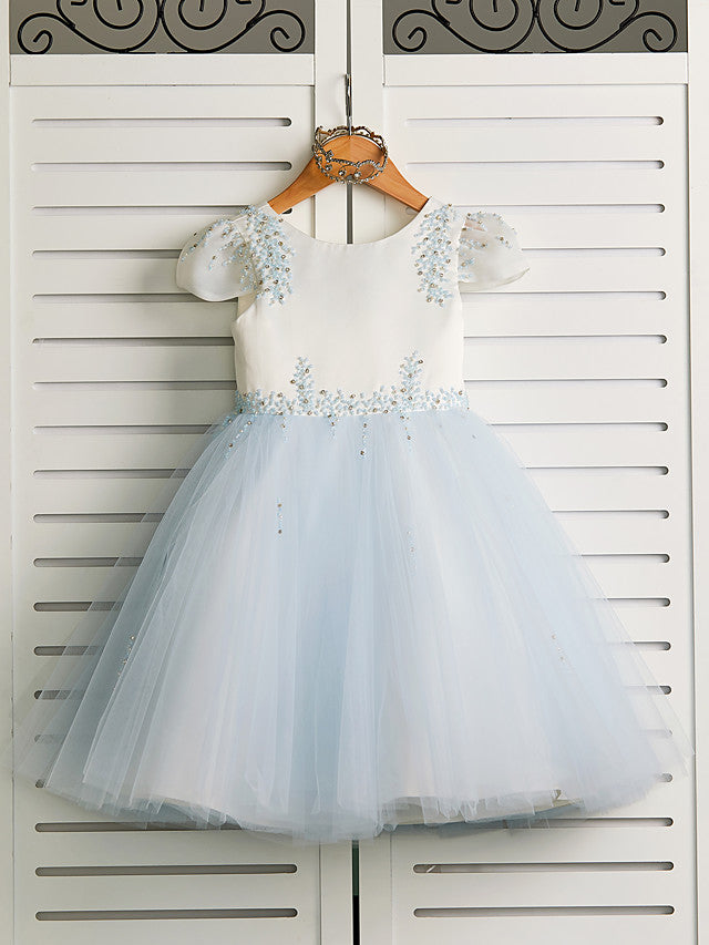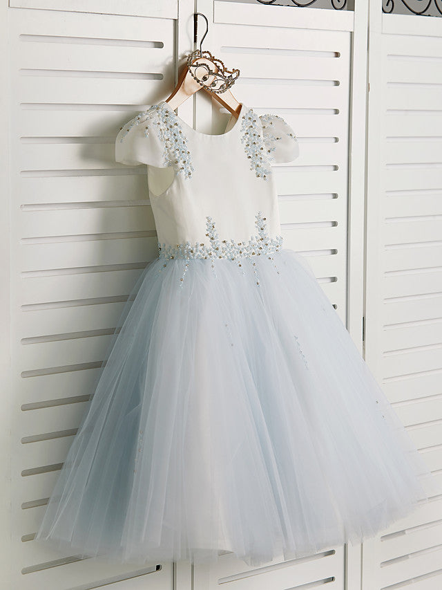 Gorgeous Cap Sleeve Jewel Neck Flower Girl Dresses Satin Tulle With Beading