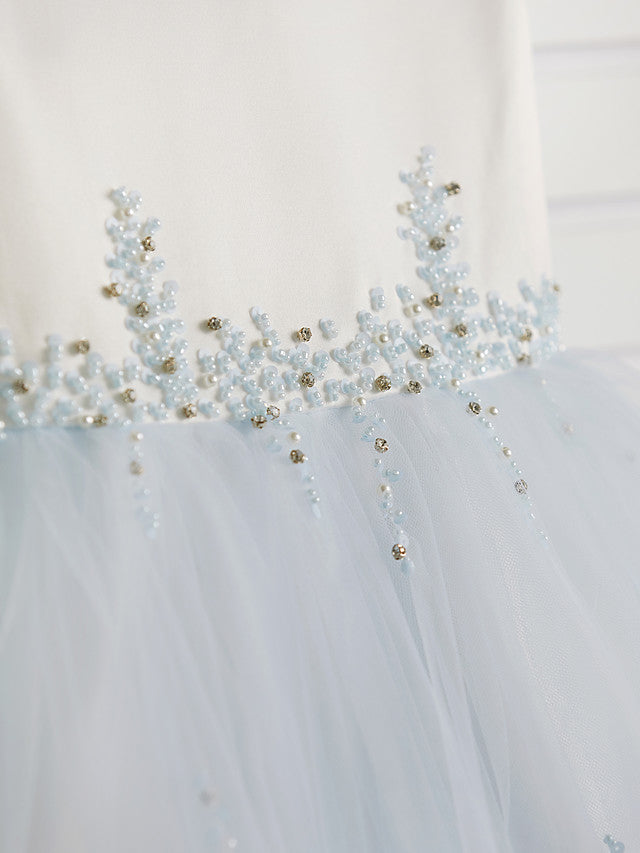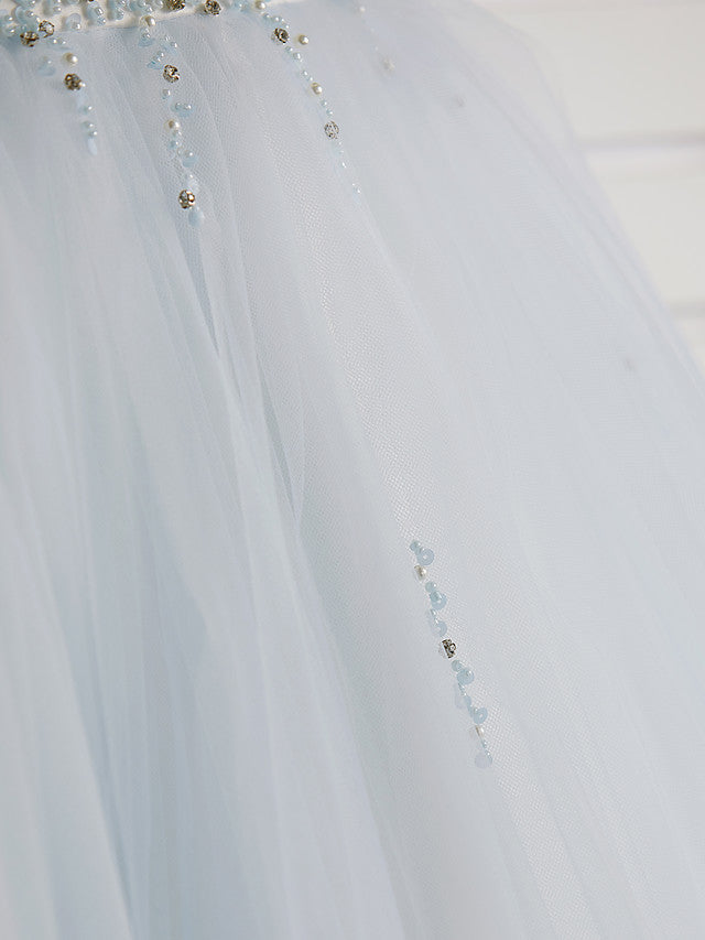 Blue A line tulle sequin long prom dress, blue tulle evening dress - picture color