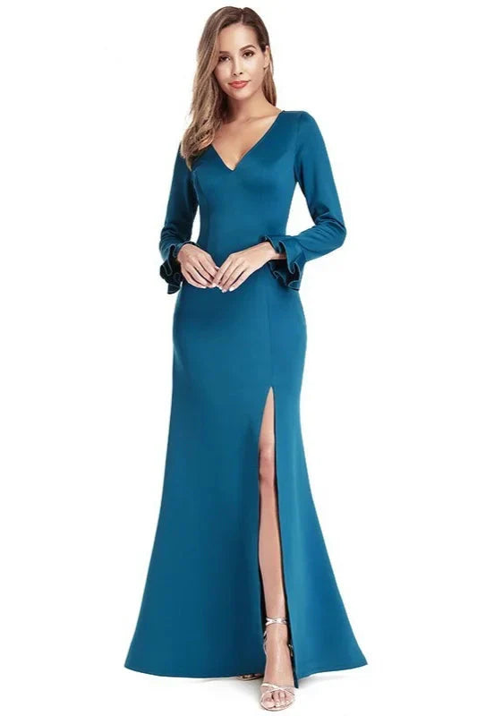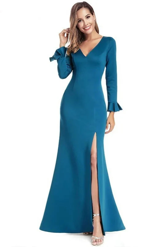 Gorgeous Long Sleeve V-Neck Split Evening Prom Dress