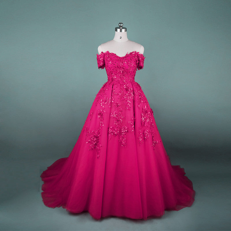 Women's Elegant Tulle Ball Gown Dress. Off-the-shoulder lace embroidery