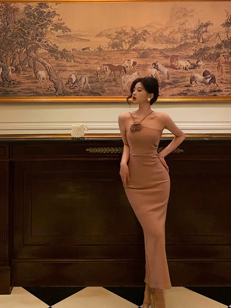 Season Spring,Summer,Fall,Winter Fabric Stretch Crepe Neckline One-Shoulder Silhouette Sheath/Column Sleeve Sleeveless Waist Natural Back Style Other Hemline/Train Floor-Length Package Weight 1500.0000