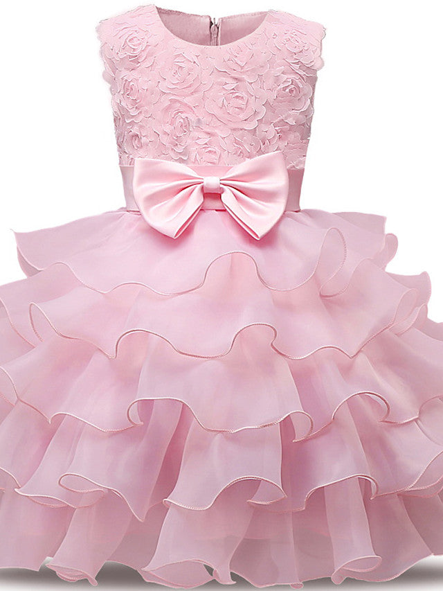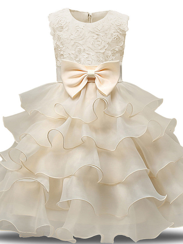 Gorgeous Sleeveless Jewel Neck Flower Girl Dresses with Lace Tulle and Bows Belt and Bow