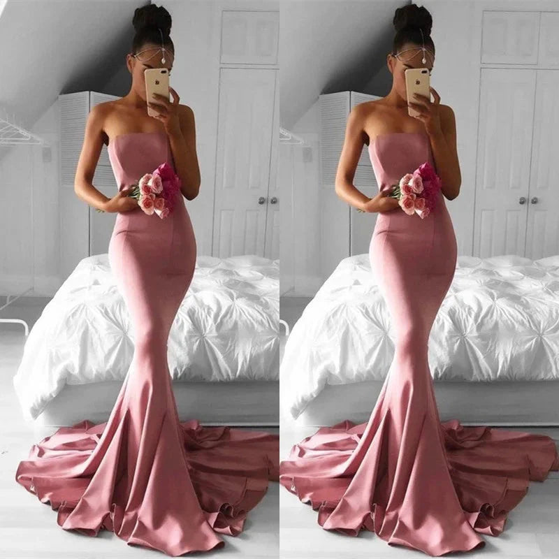 Gorgeous Strapless Pink Prom Dress Long Mermaid Evening Party Gowns