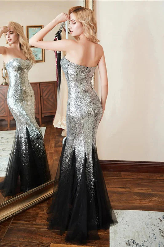 Gorgeous Sweetheart Sequins Prom Dress Mermaid Long Tulle Evening Gowns