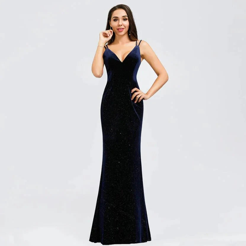Gorgeous V-Neck Velvet Evening Gowns Mermaid Long Prom Dress