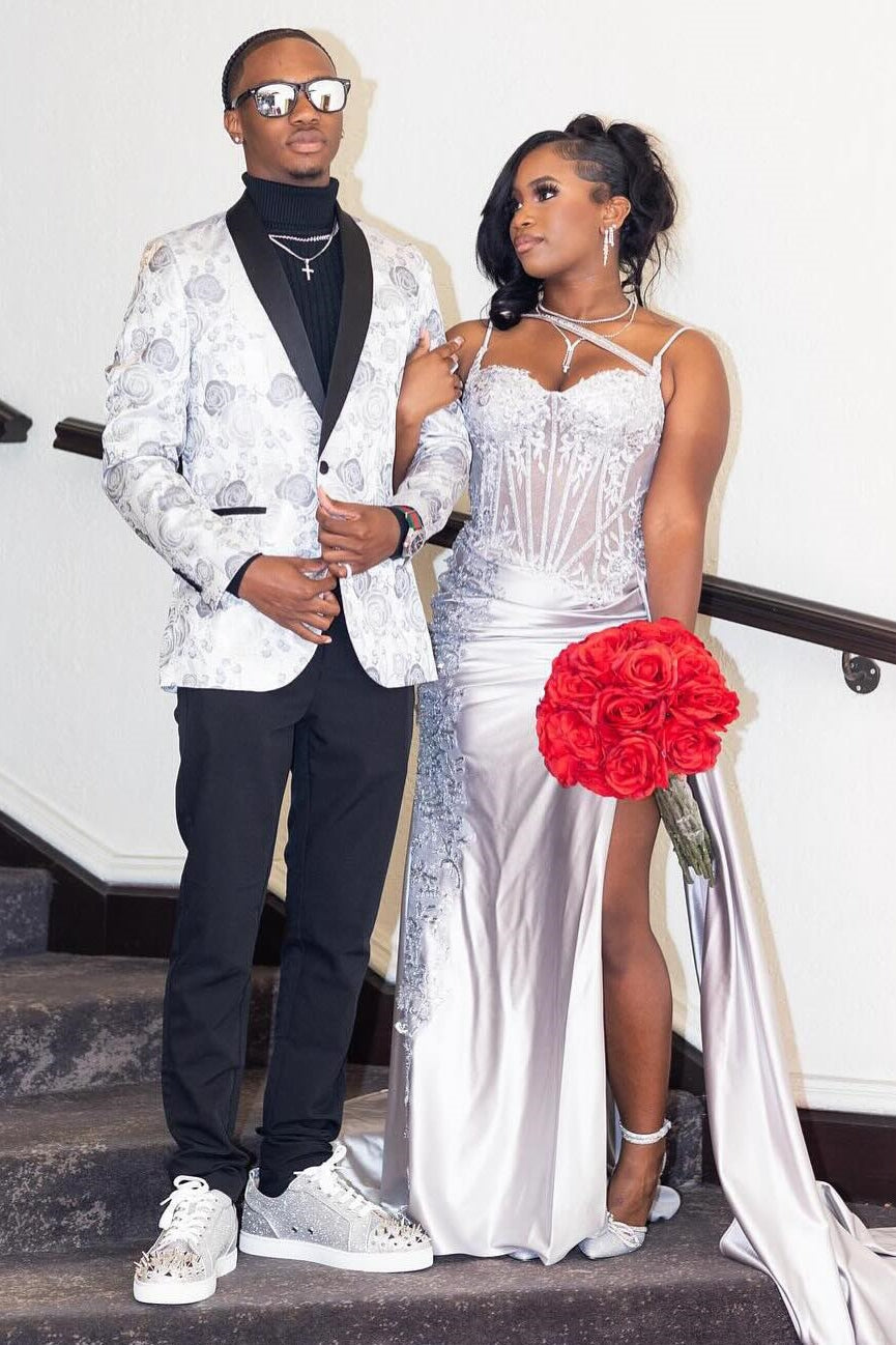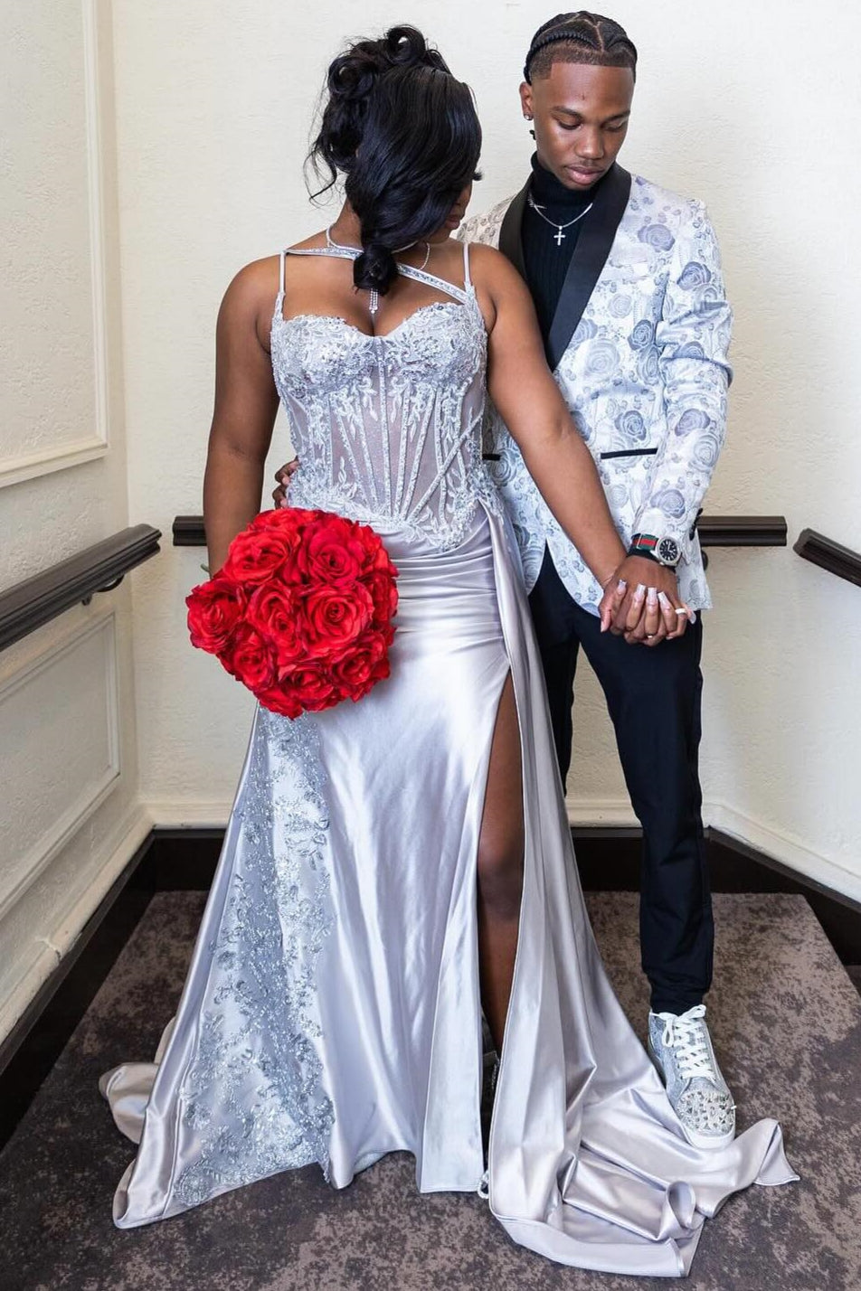 This Gorgeous White Prom Dress features a special design of elegant appliques, creating a stunning and unique look. The soft satin material and spaghetti straps offer a comfortable and flattering fit. The sheath silhouette and sleeveless style add a touch of sexiness and liveliness. Completed with a sweep train hemline for an effortlessly beautiful look.