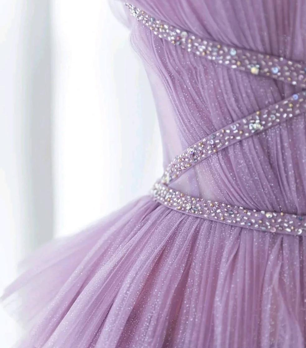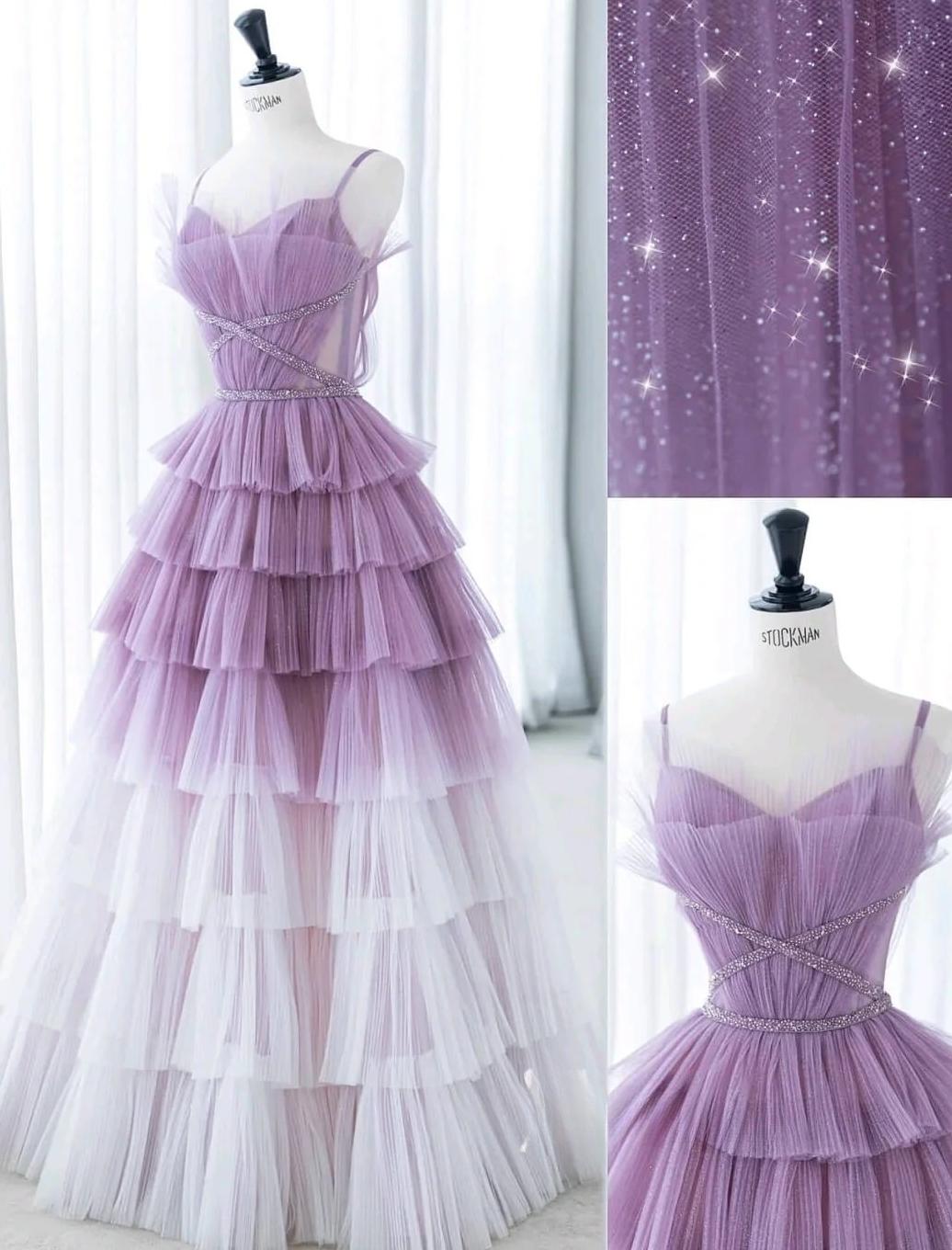 Gradient Purple A-Line Spaghetti Strap Tulle Sequin Long Prom Dress Graduation Prom Dress ED01672