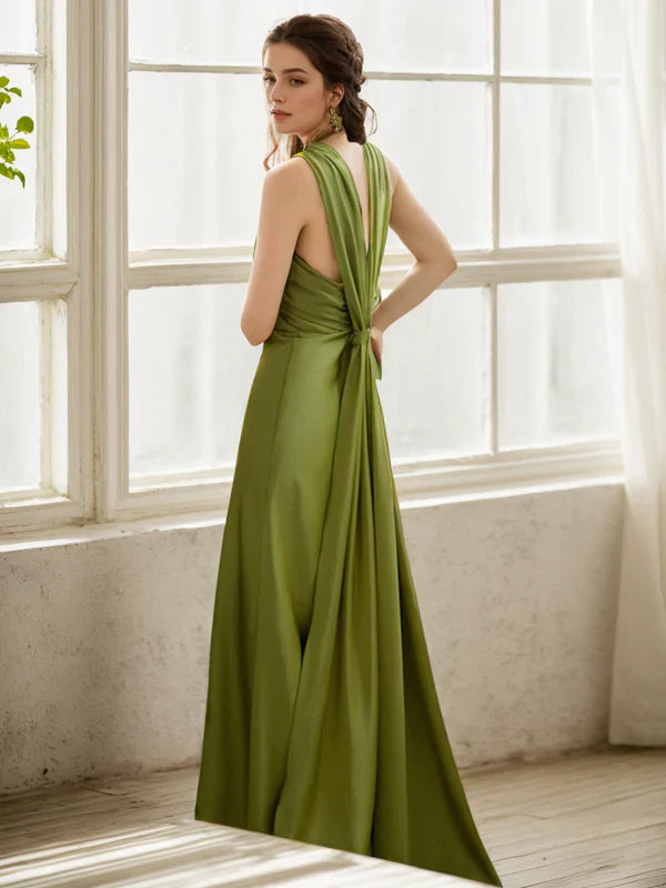 Greece goddess haltered sheath silky satin prom dress with long ribbon multiple colors