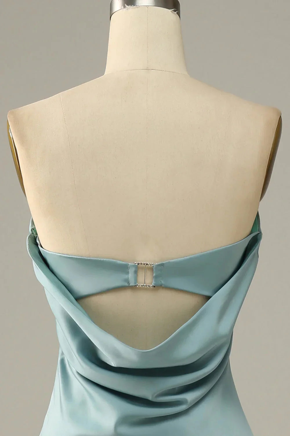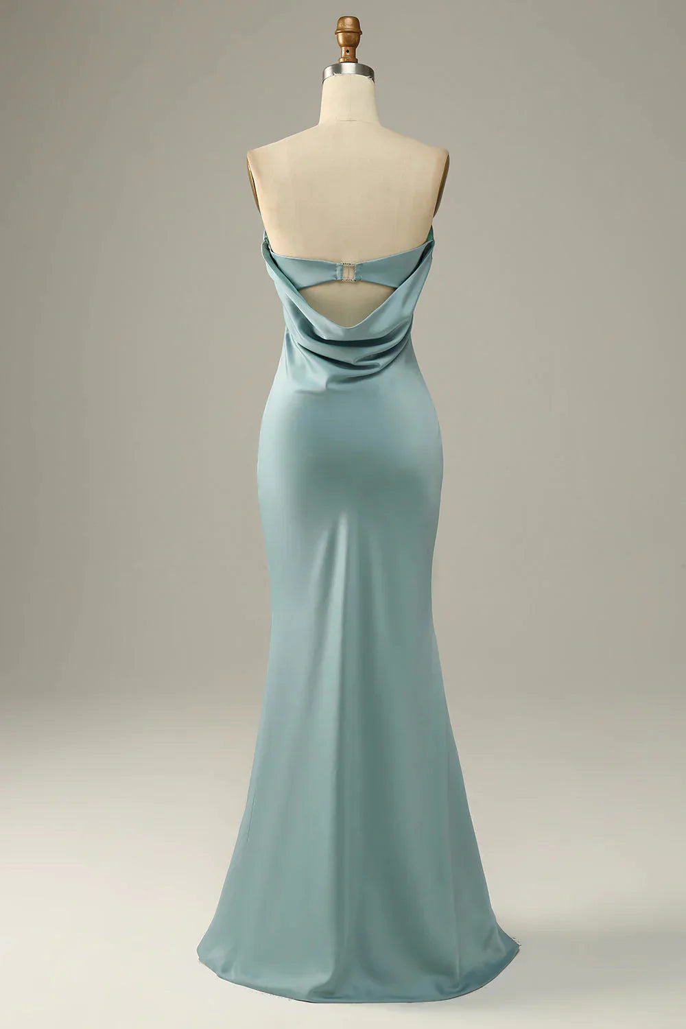 Grey blue fish tail strapless and satin bridesmaid dress
