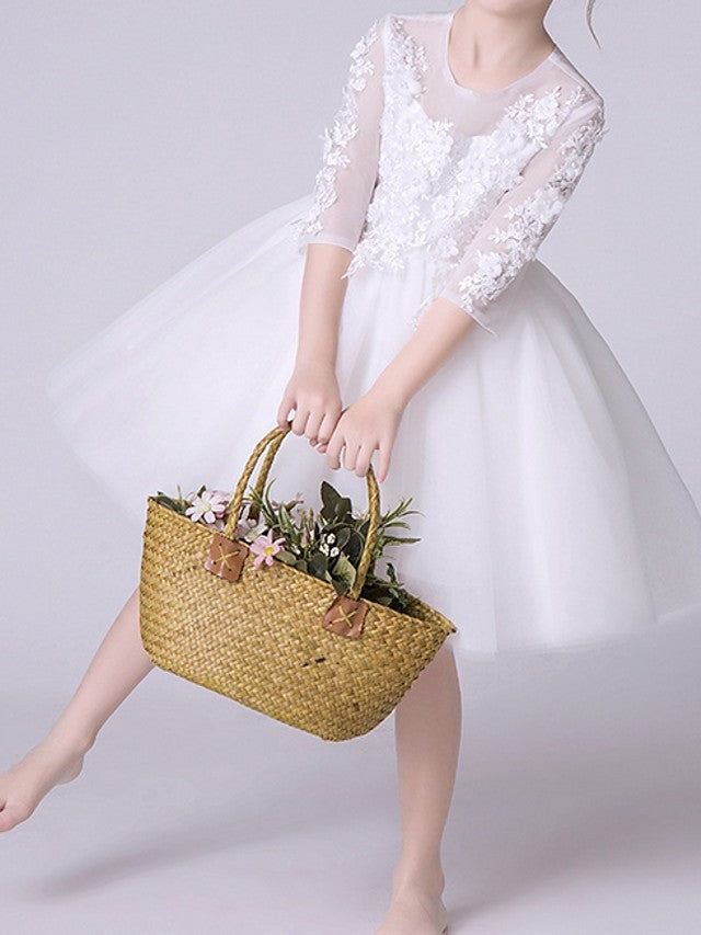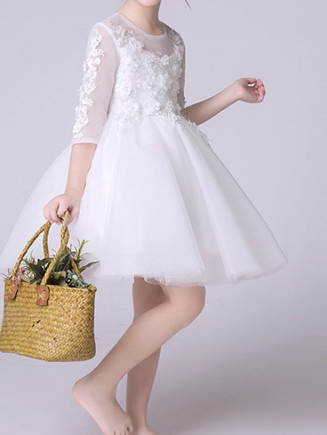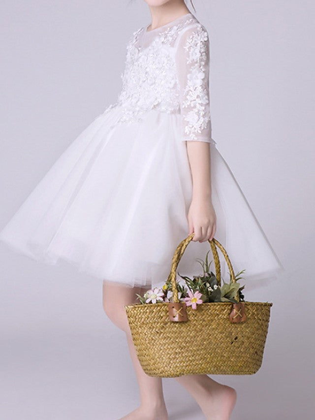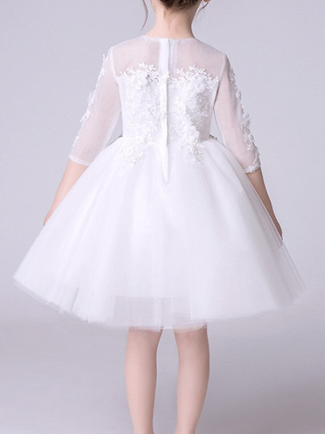 Half Sleeve Jewel Neck Knee Length Flower Girl Dress With Appliques