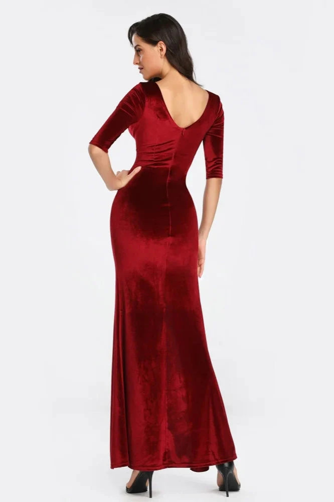 Half Sleeve Velvet Prom Dresses Long Split Evening Gowns