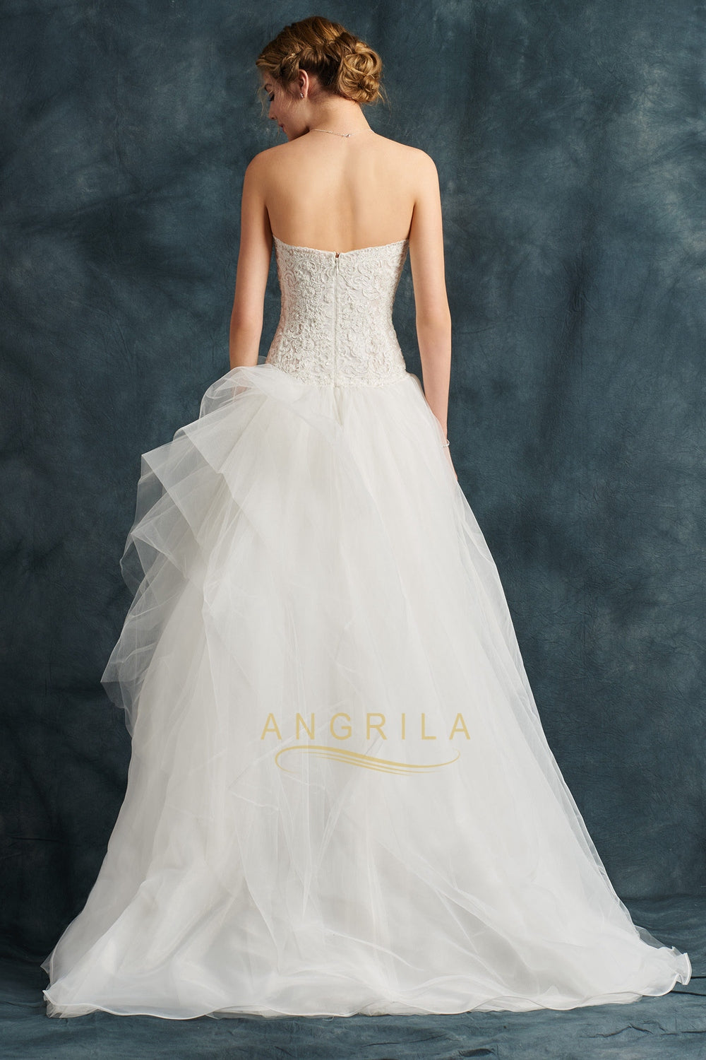 High-Low Sweetheart Neckline Layers Wedding Dresses with a Wide Skirt in Tulle Draped