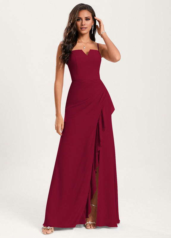 Horn fishtail square and ground chiffon ruffled bridesmaid dress