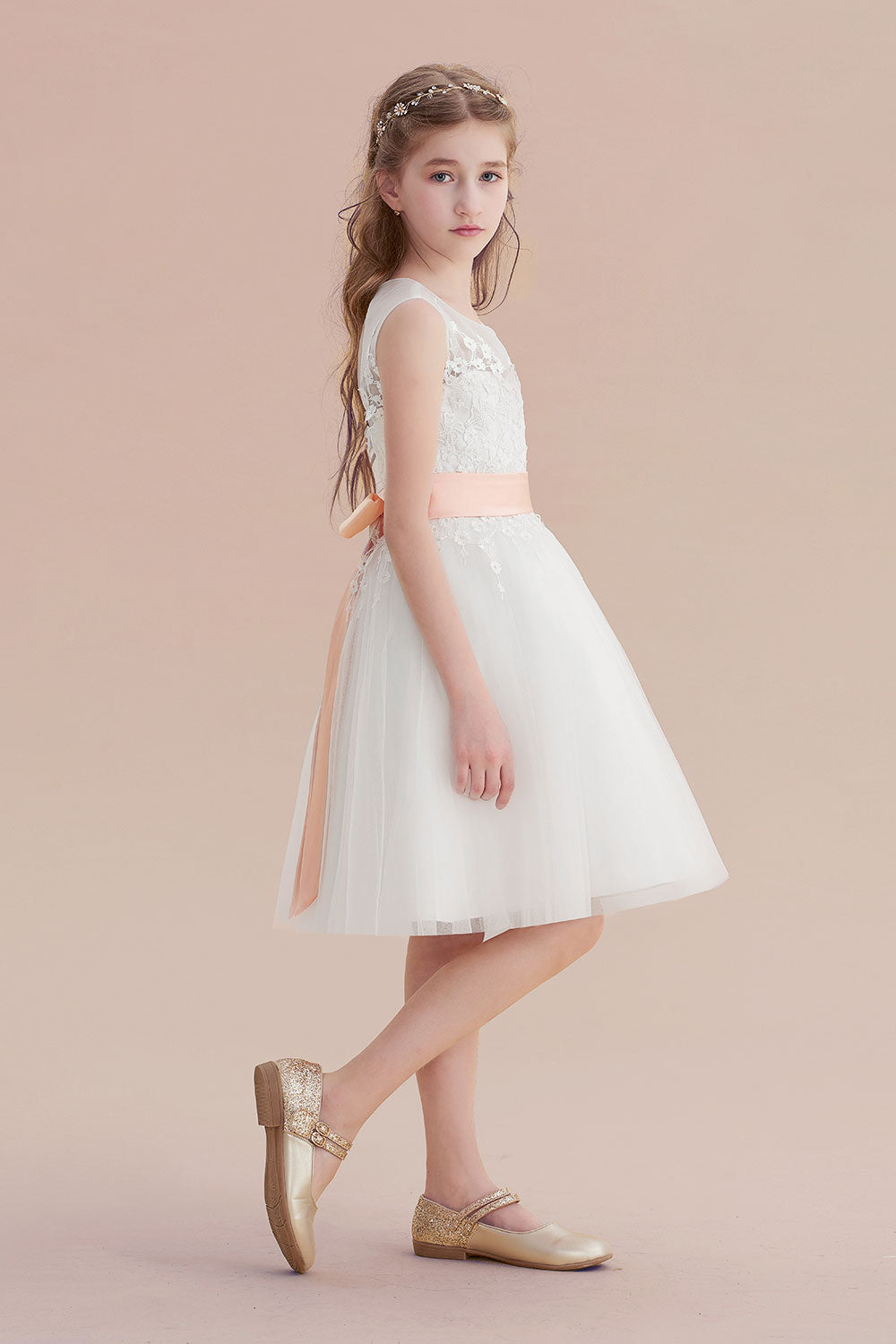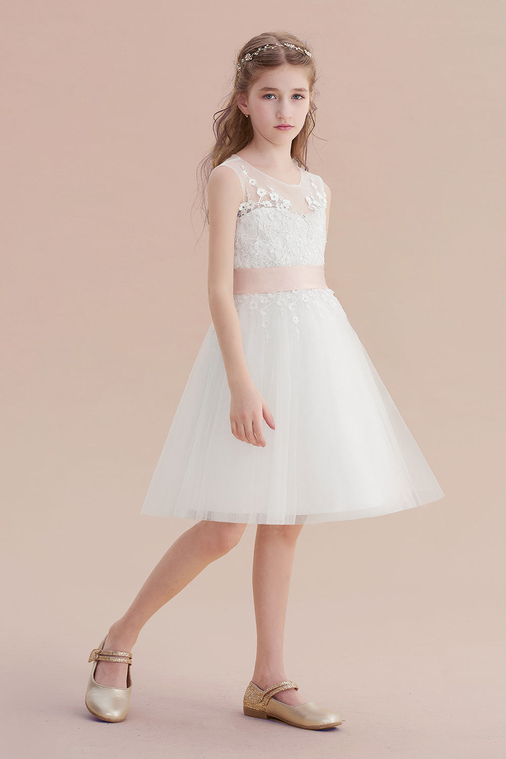 Illusion Appliques Tulle A-line Flower Girl Dress