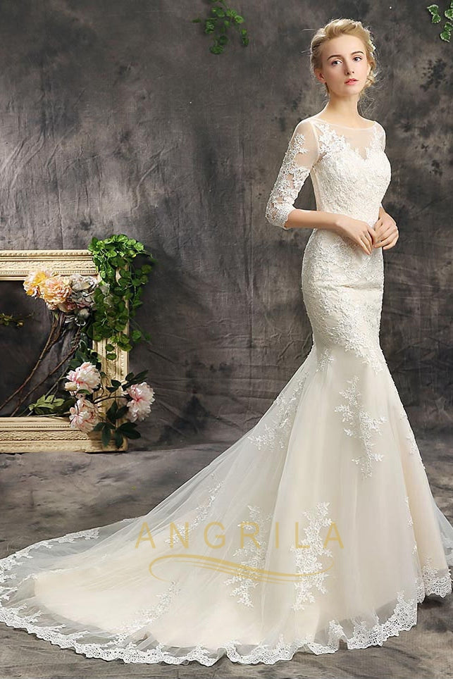 Illusion Neckline Mermaid Bridal Wedding Dresses