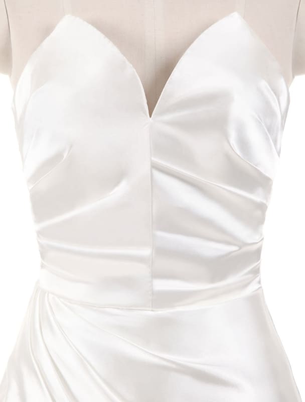 Women’s Long Satin Prom Dresses Spaghetti Straps Bridesmaid Dresses Formal Dress Ball Gowns with Slit - White