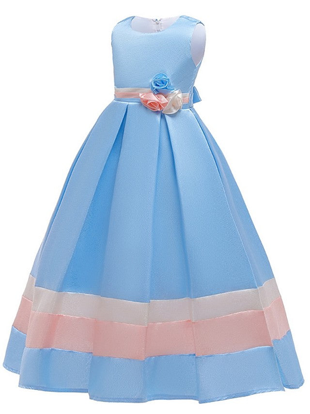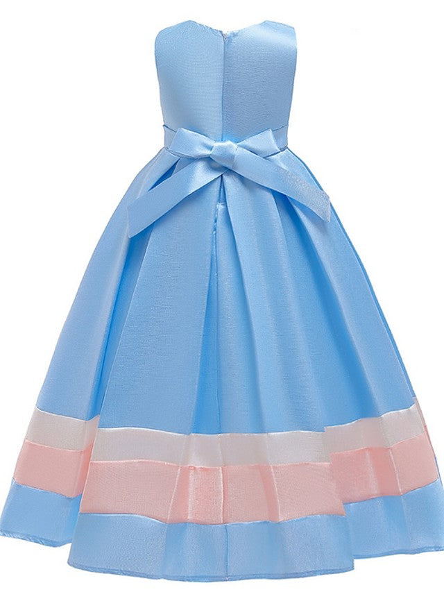 Jewel Sleeveless A-Line Flower Girl Dress With Bow Ruching