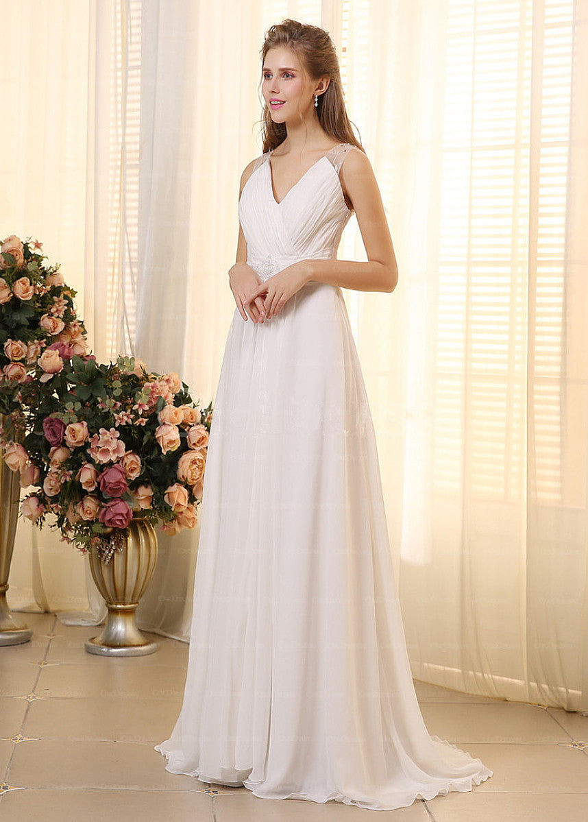Junoesque A-Line V-neck Sleeveless Beadings Pleated Chiffon  Wedding Dresses