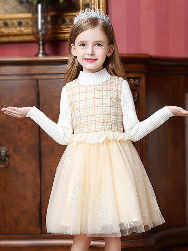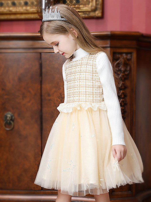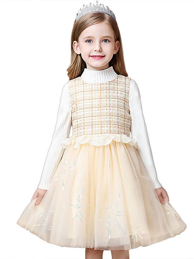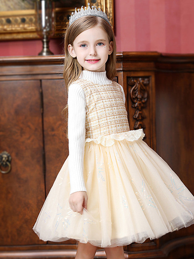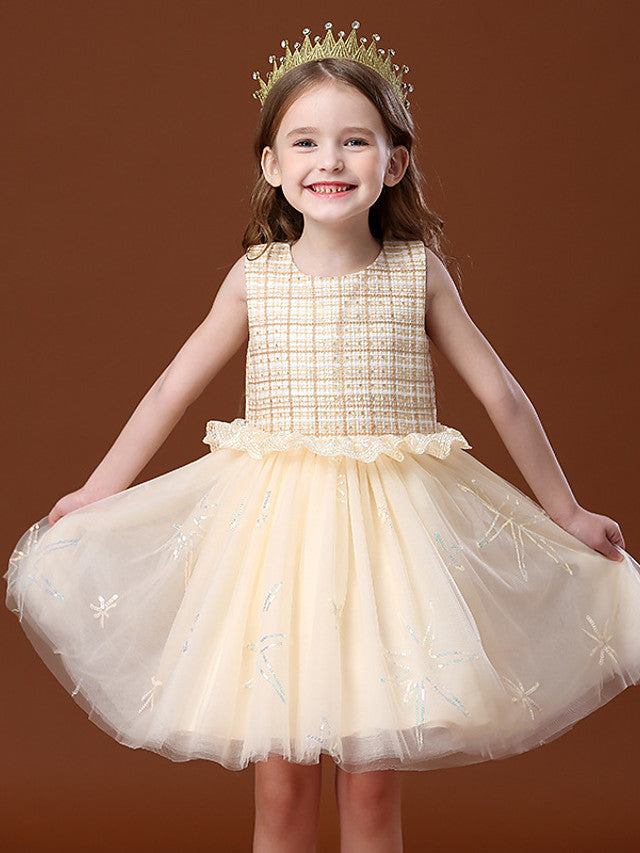 Knee-Length Tulle Flower Girl Dress with Jewel Neckline and Spliced Ruffles