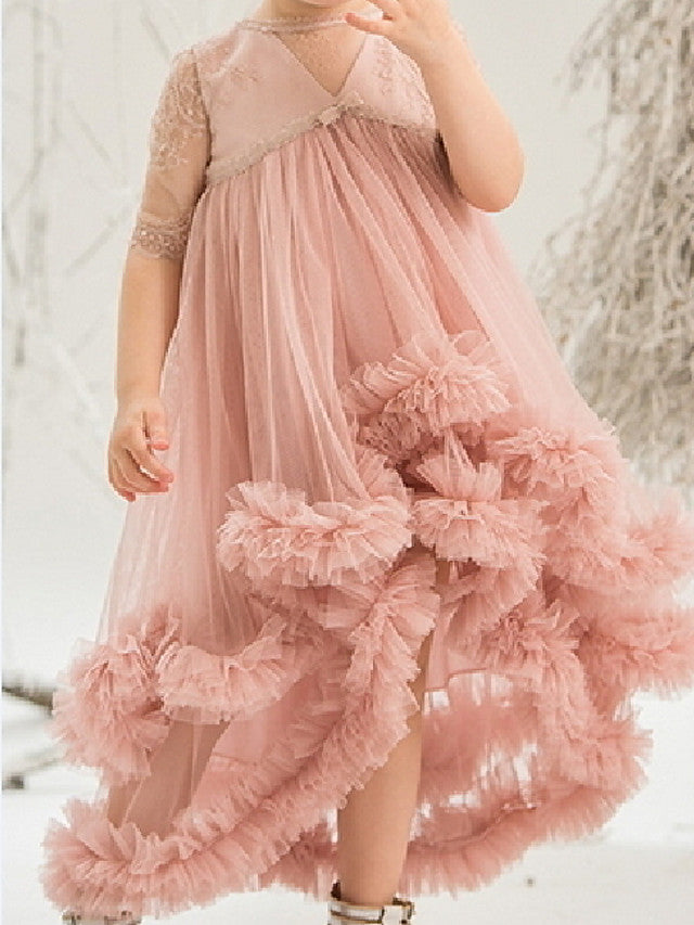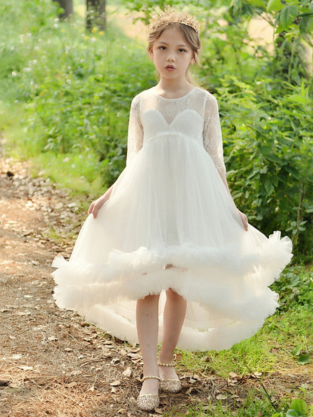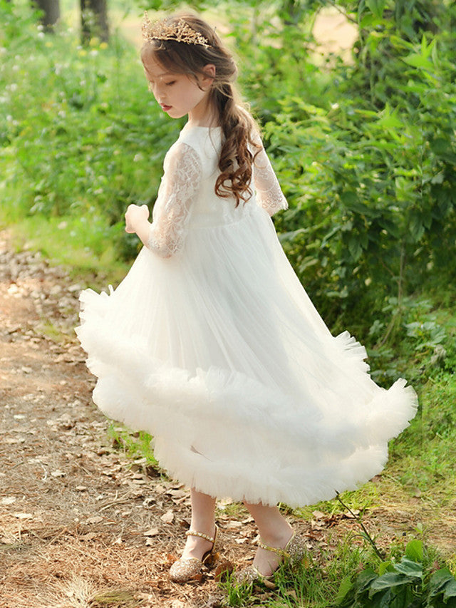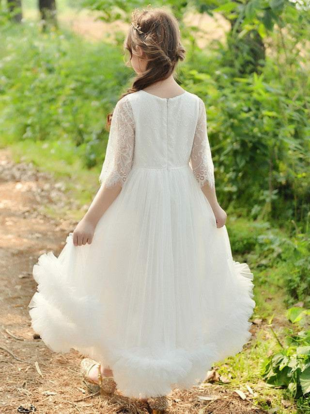 Lace 3/4 Length Sleeve Jewel Neck Ball Gown Flower Girl Dress
