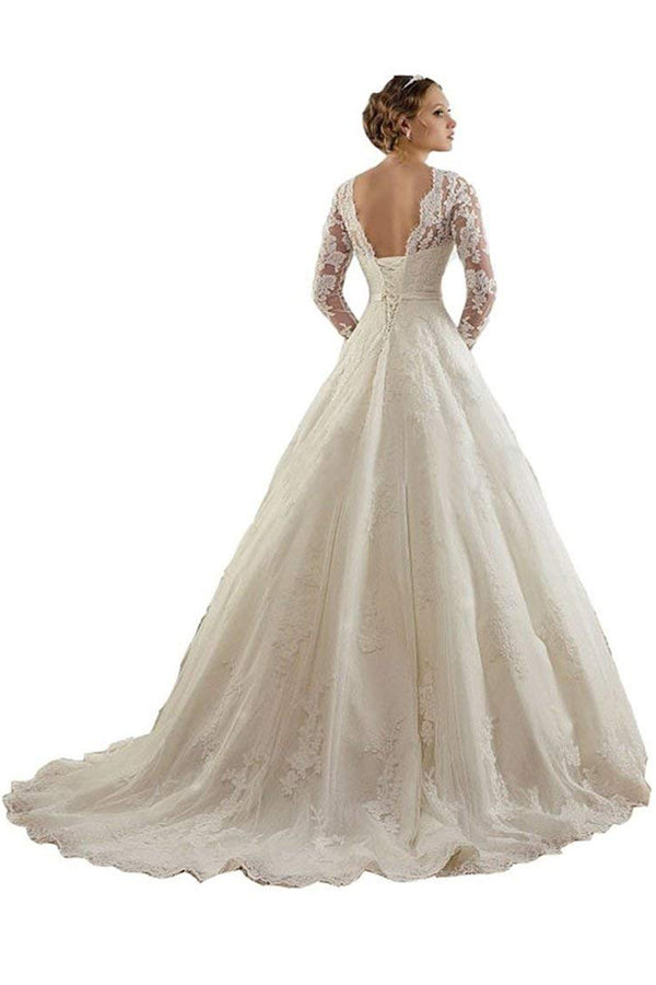Lace Applique Long Sleeves Chapel Wedding Dress