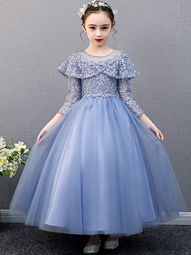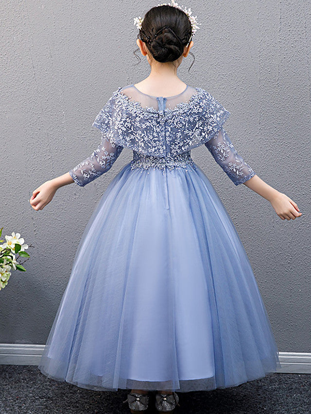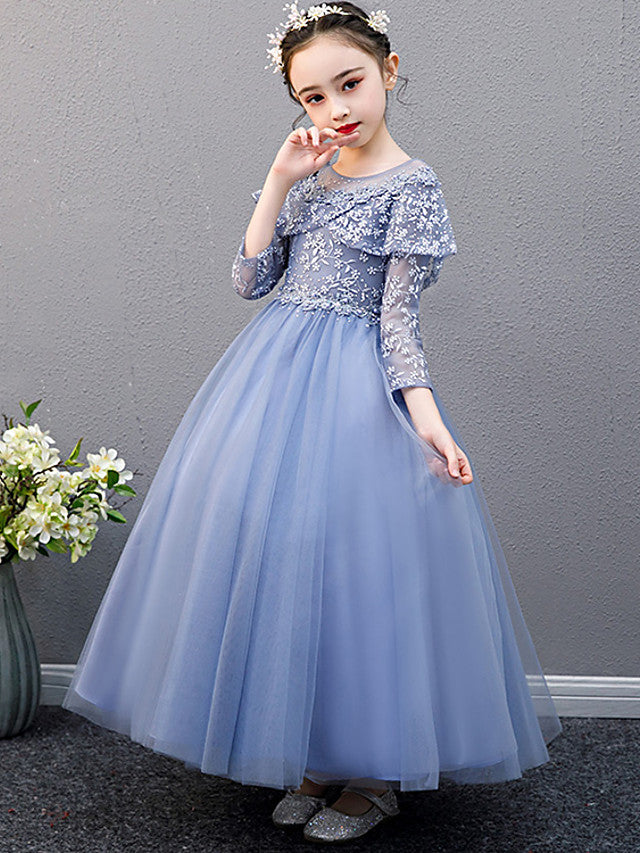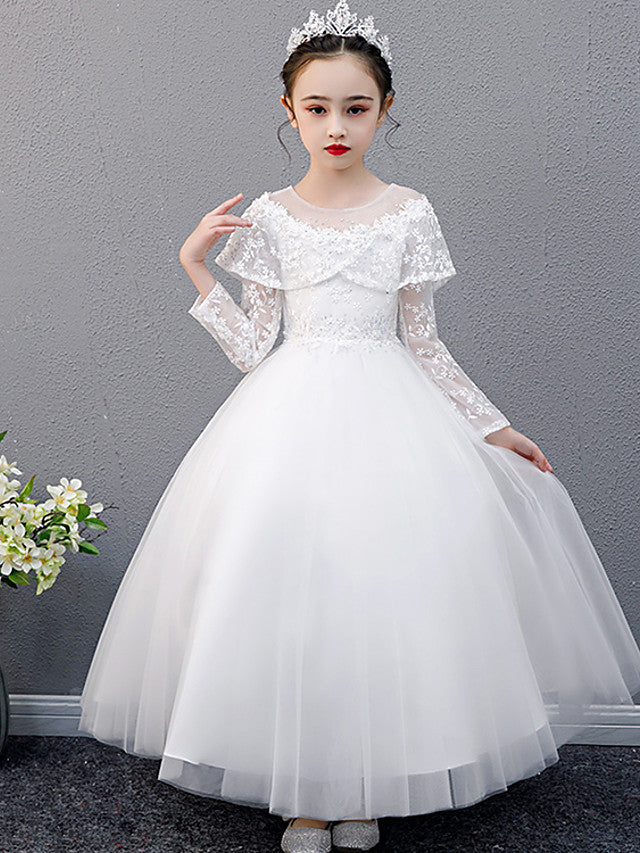Lace Beaded Sleeveless Jewel A-Line Flower Girl Dress