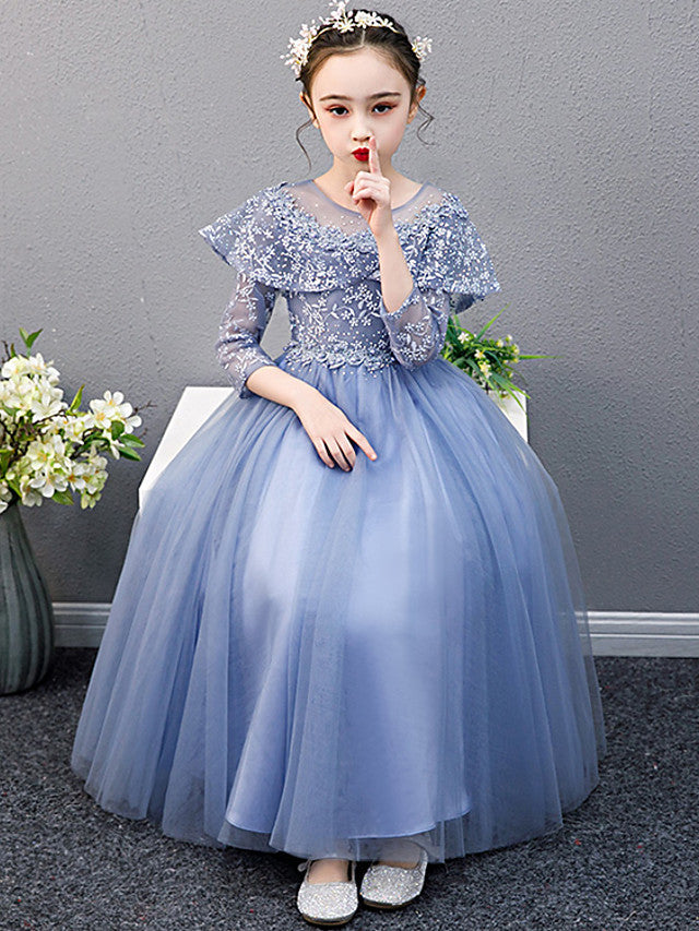 Blue A line tulle sequin long prom dress, blue tulle evening dress - picture color