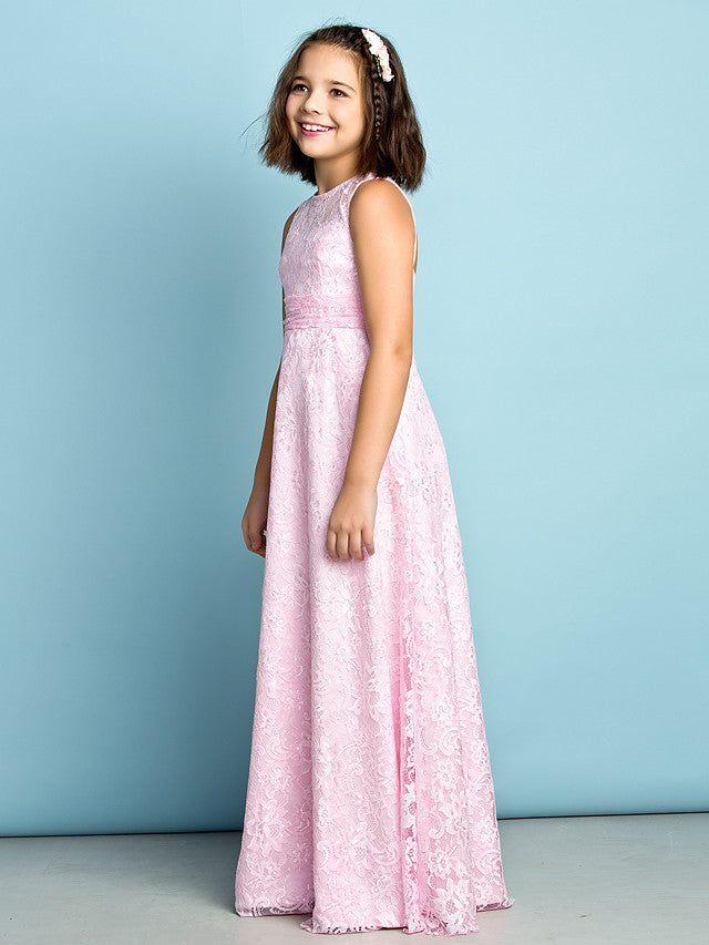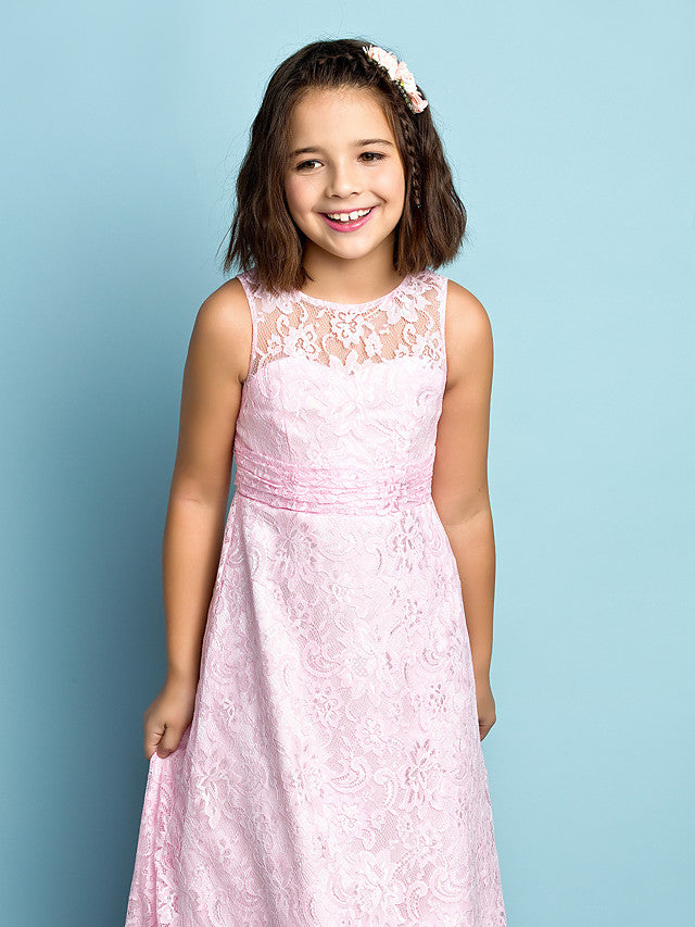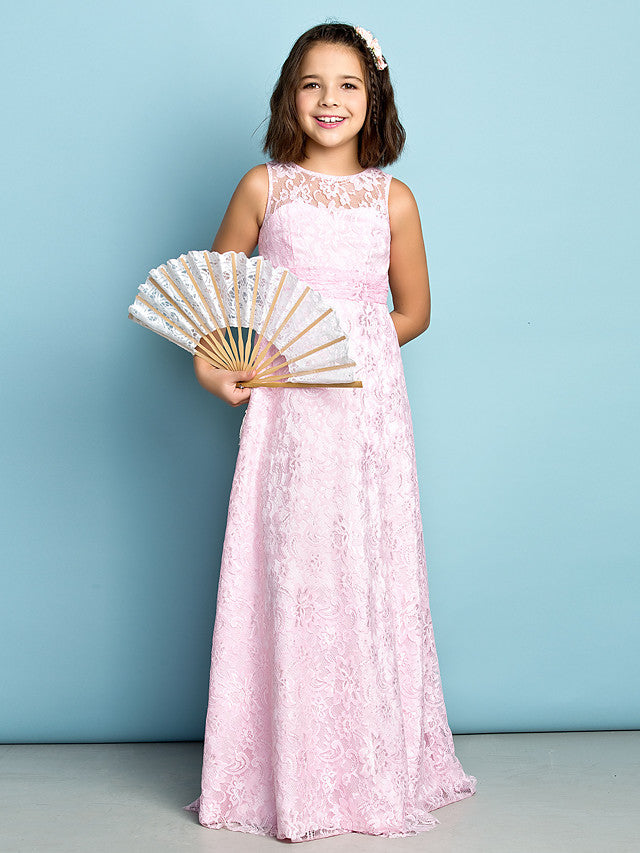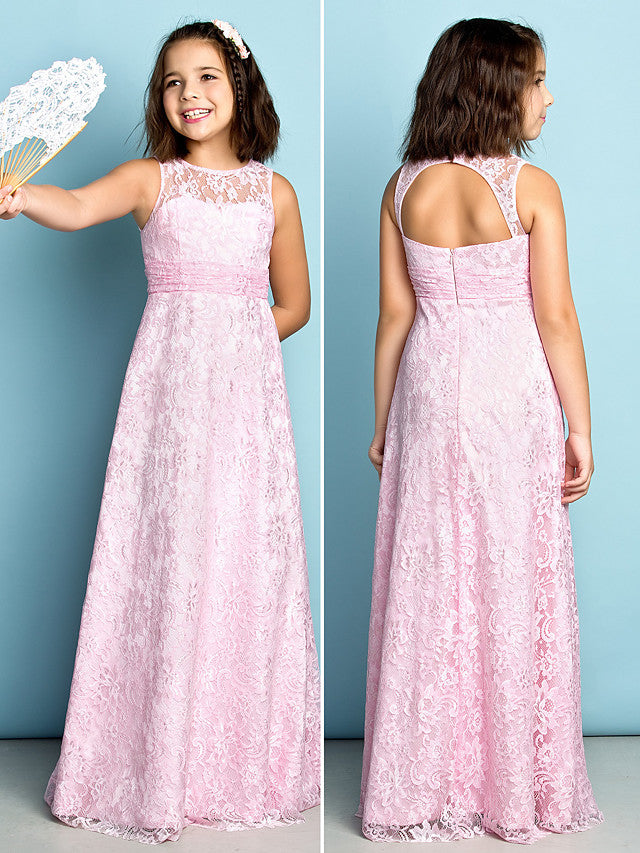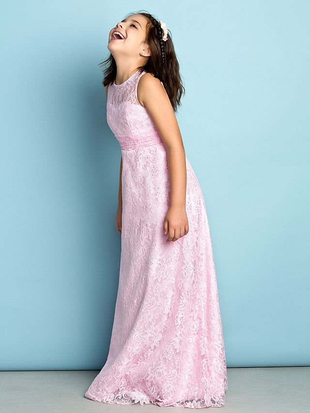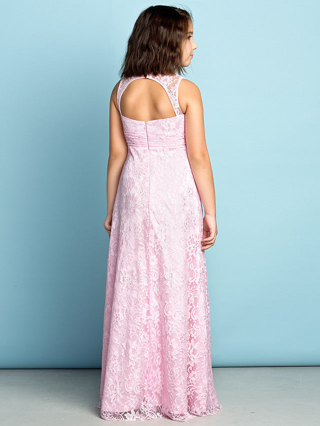 Lace Flower Girl Dress ¡§C Natural Mini Me Sheath Column Jewel Neck Floor Length