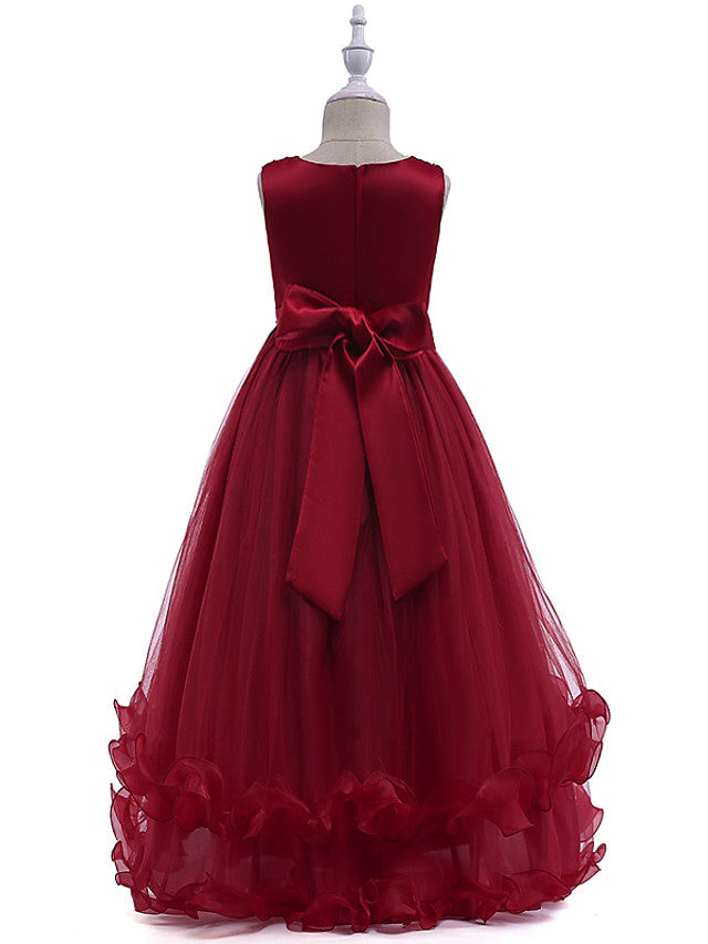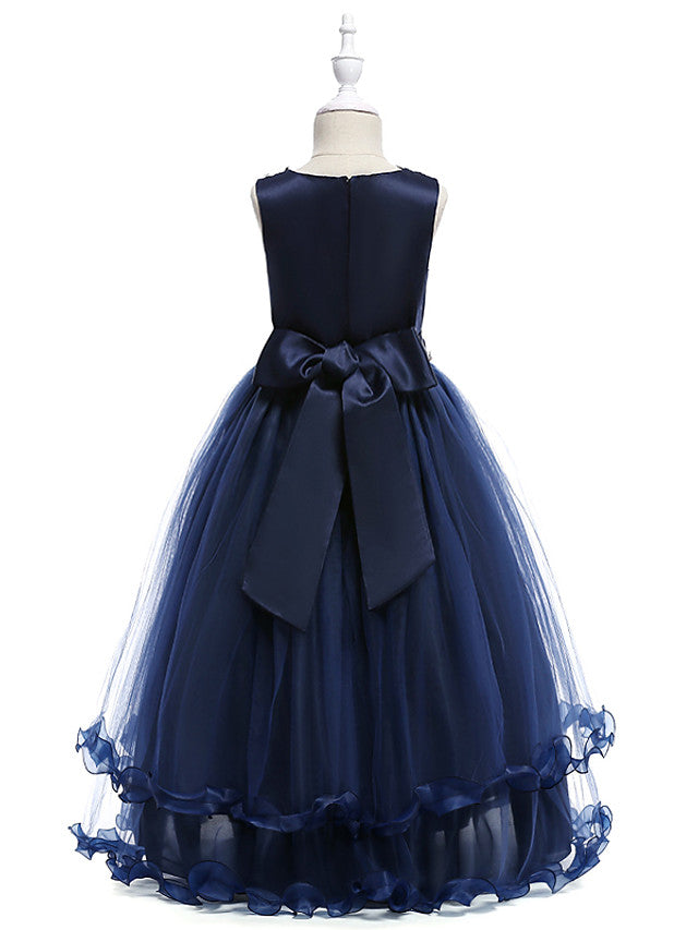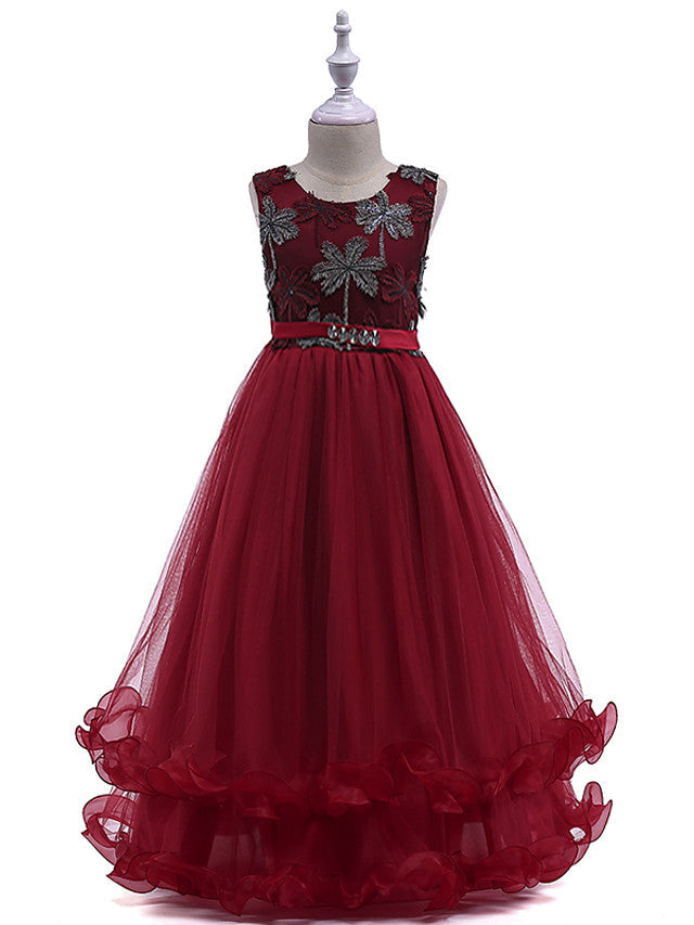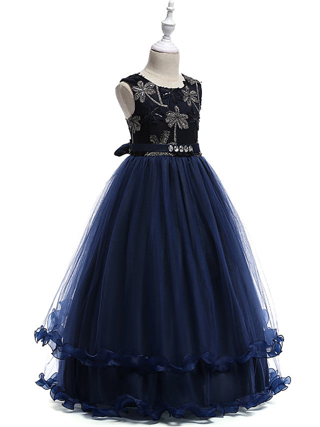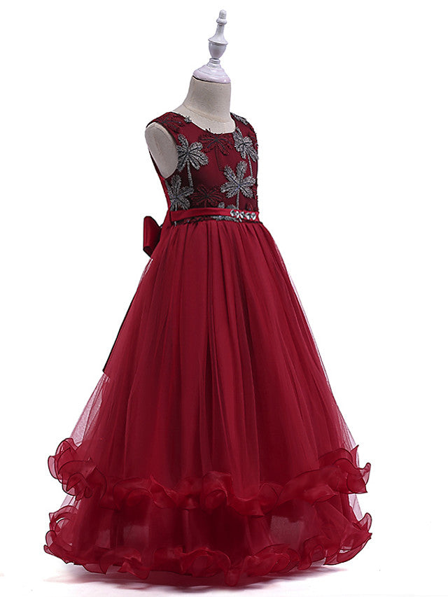 Lace Tulle Sleeveless Jewel Flower Girl Dress with Crystals