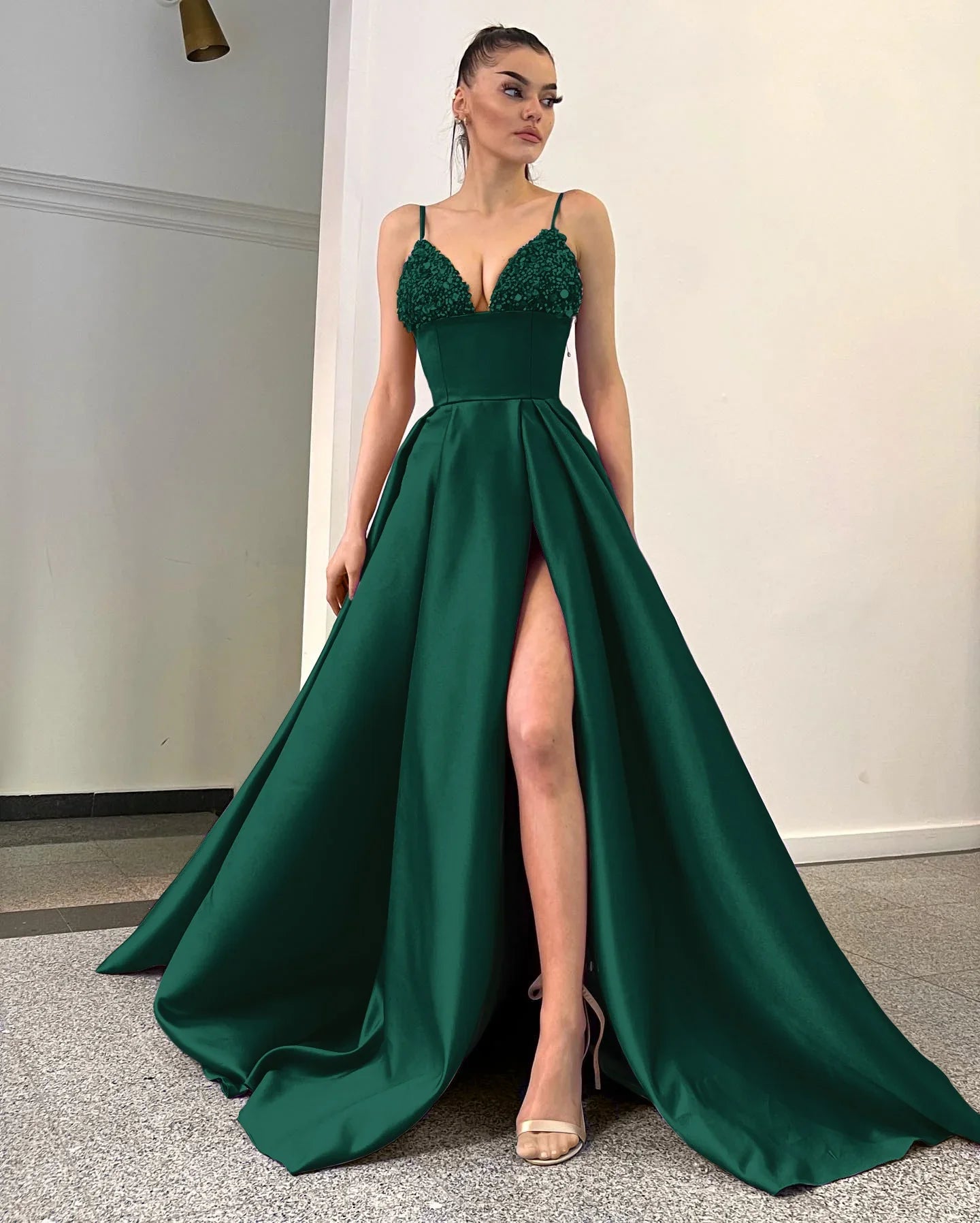 Features: Satin Long Spaghetti Strap Prom Dresses, Floor Length, Strappy Back Design, Sexy Backless, Built-in Bra, Plus Size Dresses, Sleeveless, Quality Fabrics and Linings Provide A Comfortable Wearing Experience.