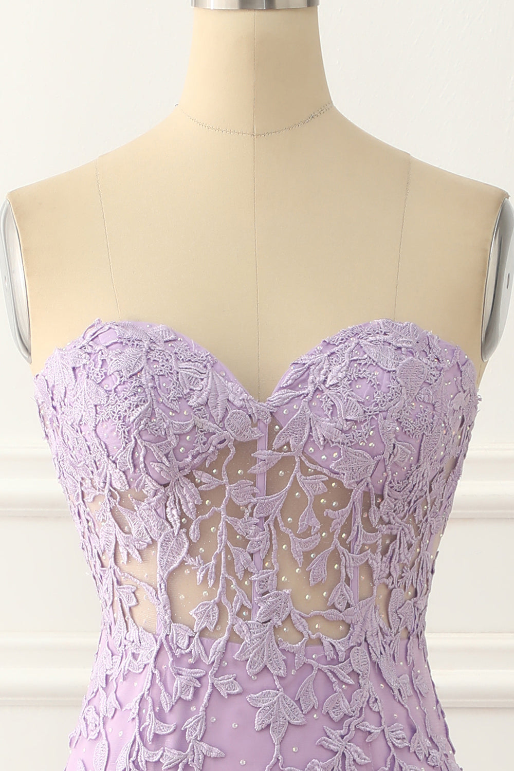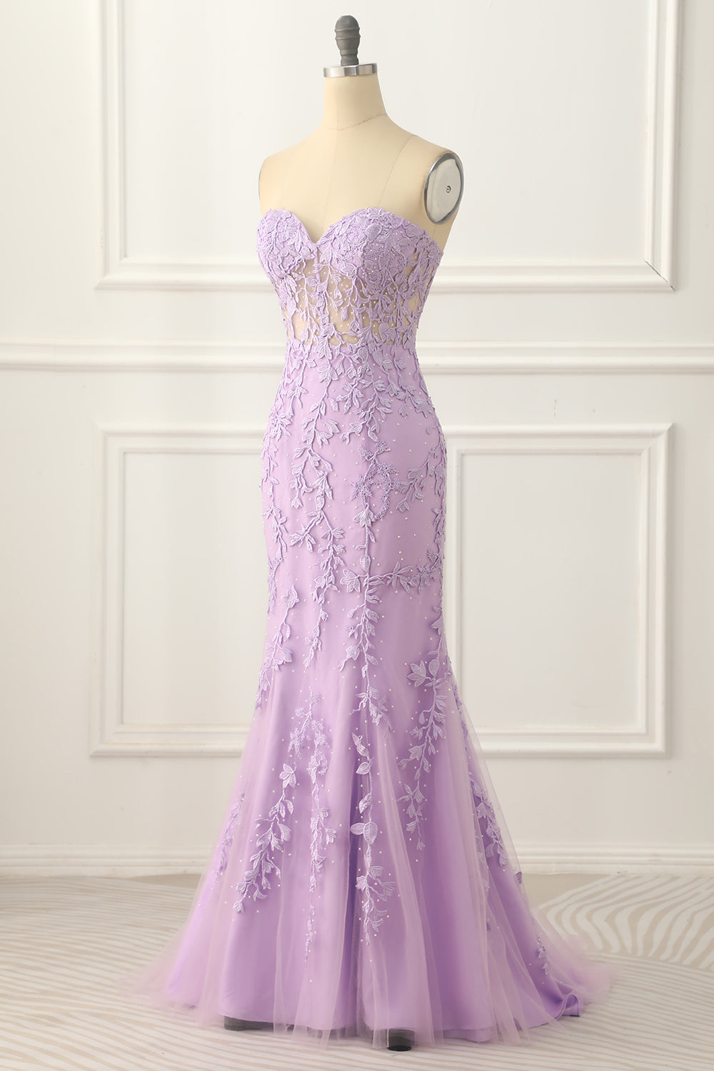Lavender Strapless Mermaid Prom Dress With Appliques