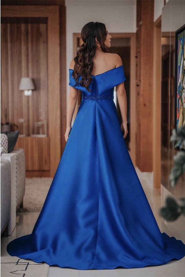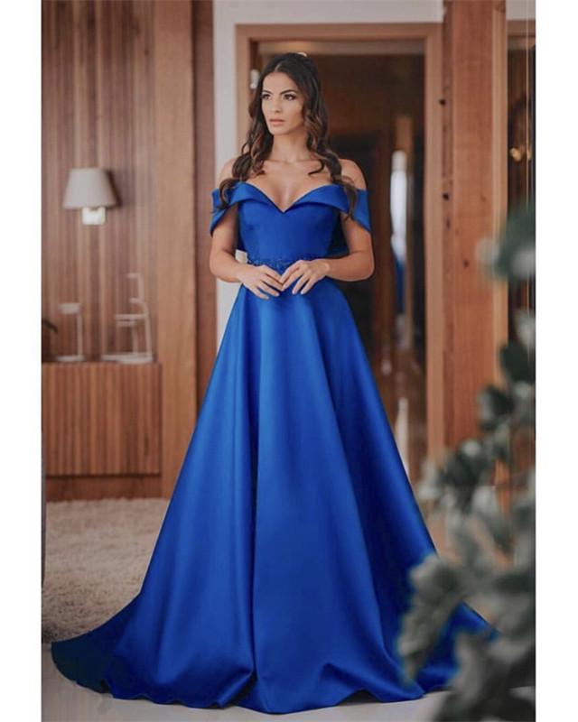 Item Description: Charming Satin Floor Length Gowns Featuring V-neckline,Off Shoulder With Empire Waistline,Zipper Back.Perfect For Evening,Prom,Formal Or Any Other Special Occasions !