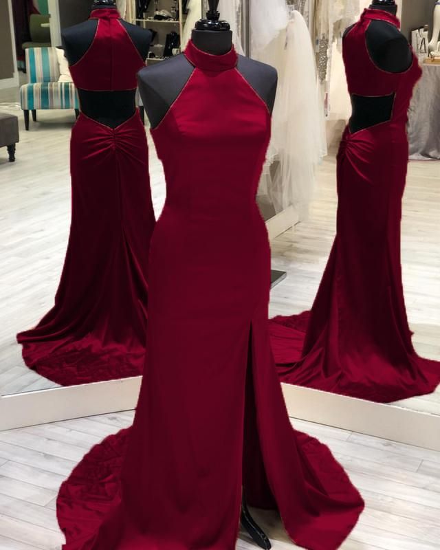 Item Description : A Glamorous Mermaid Dress Featuring Halter Top And Keyhole Back Design With Leg Split. Perfect For Prom,Evening,Formal Wedding,Bridesmaid Or Any Other Special Occasions ! Colors Available: Gold,Burgundy,Royal-Blue,Navy-Blue