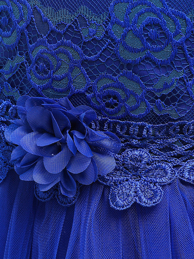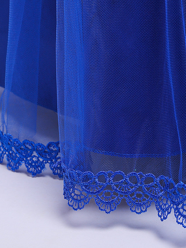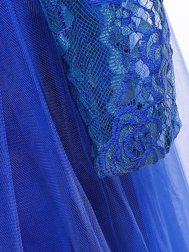 Blue A line tulle sequin long prom dress, blue tulle evening dress - picture color