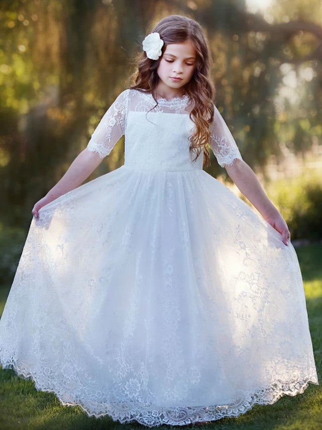 Long Sleeve Jewel A-Line Floor Length Flower Girl Dress