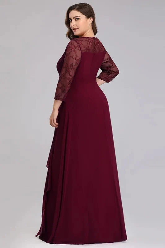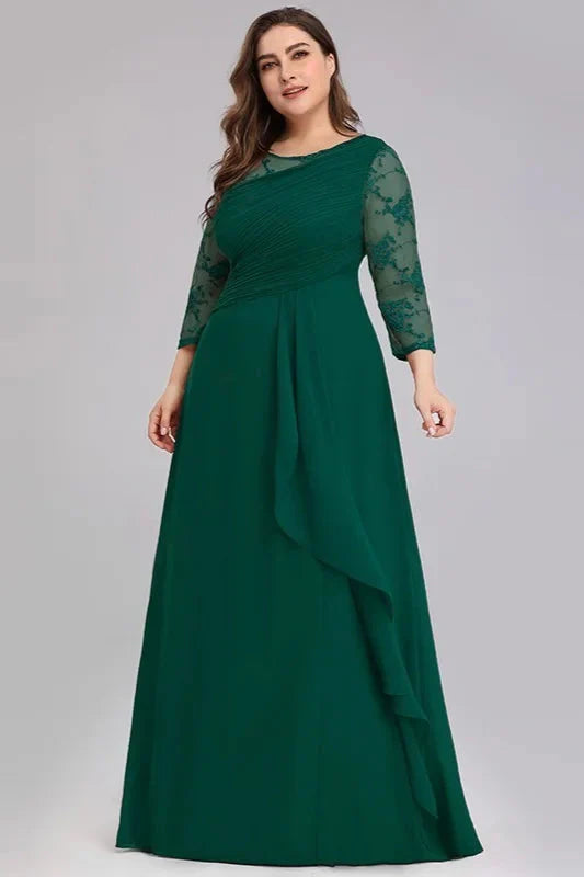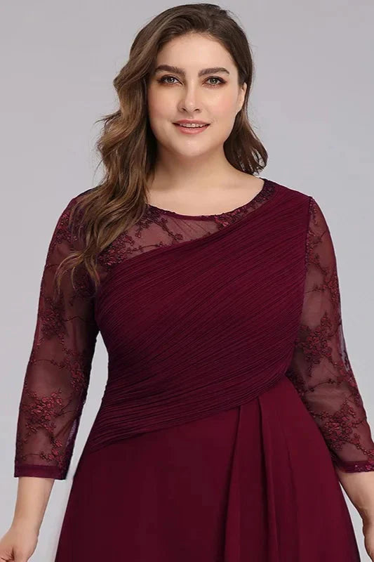 Long Sleeve Plus Size Prom Dress With Lace Long Chiffon Evening Gowns