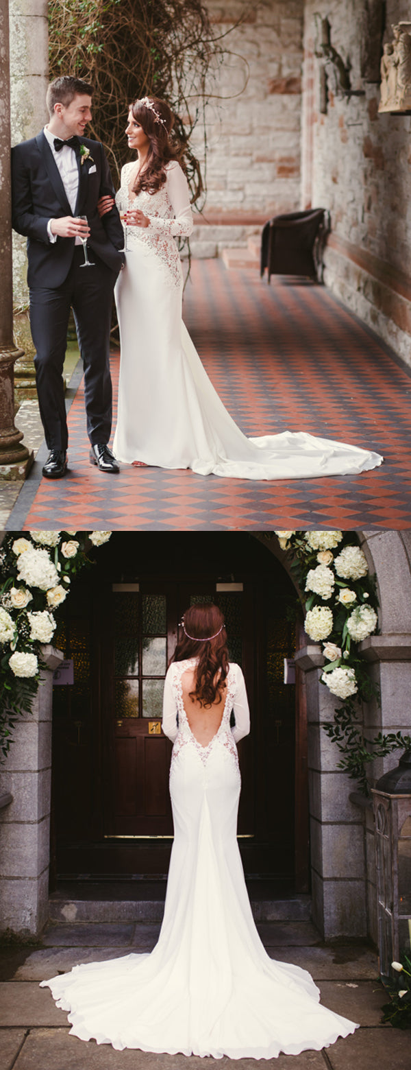 Long Sleeve See Through Lace Open Back Mermaid With Train Wedding Dresses