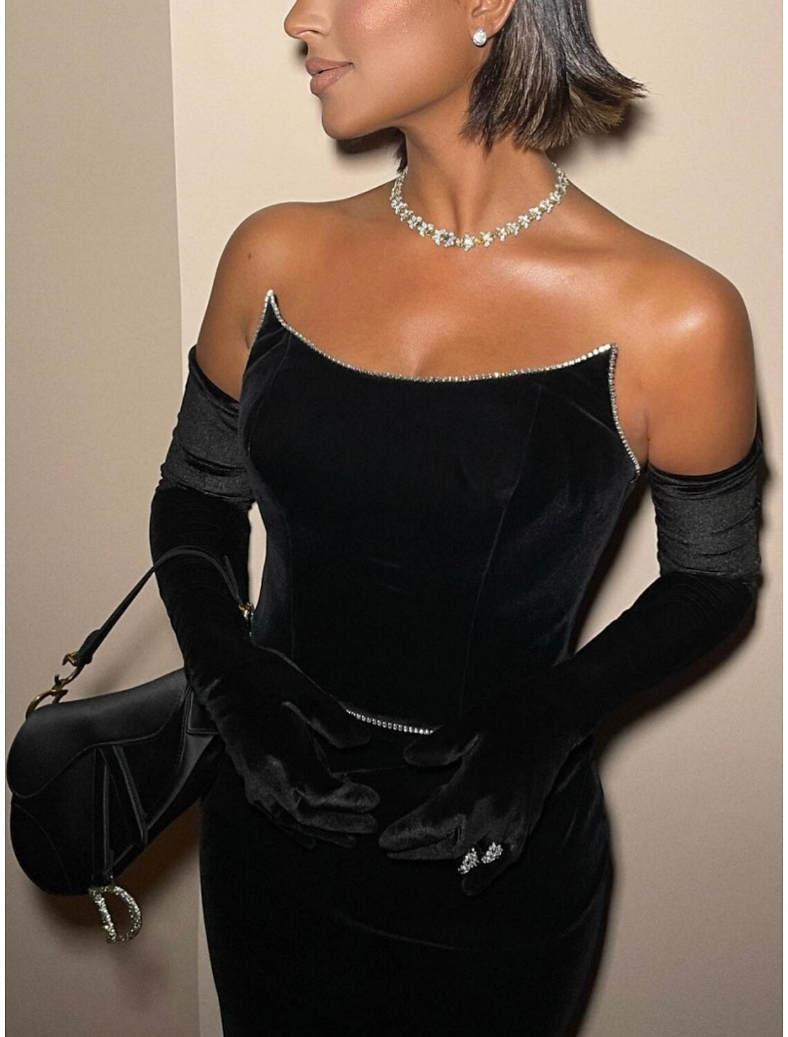 Mermaid Black Dress Plus Size Evening Gown Elegant Dress Formal Sweep / Brush Train Sleeveless Strapless Velvet with Ruched Sequin 2025