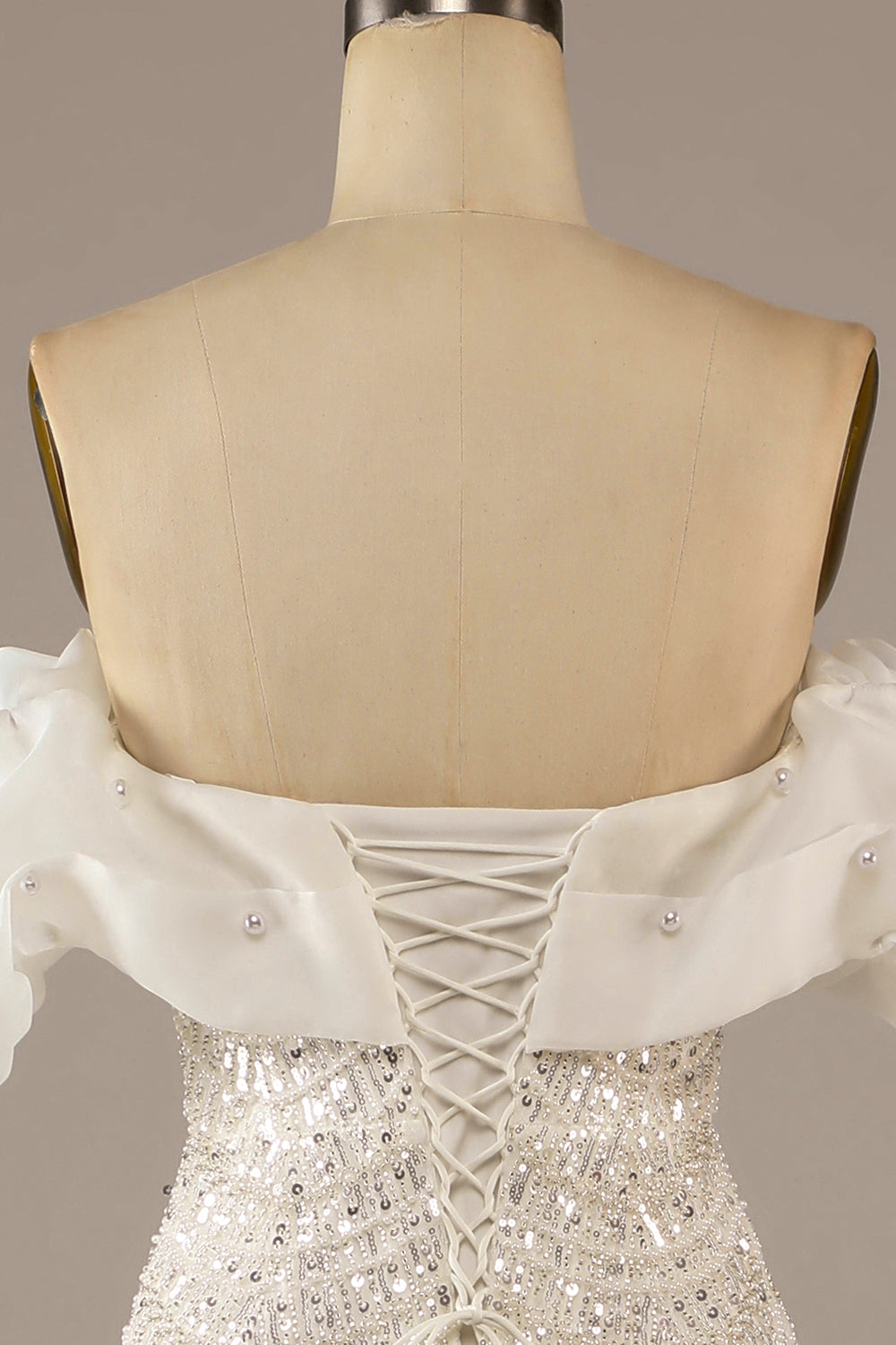 Mermaid Off The Shoulder Sweep Train Wedding Dress with Sequins