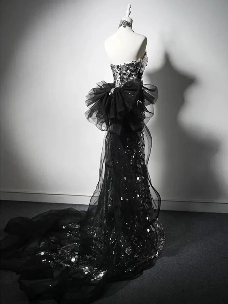 Black Robe De Soiree Mermaid Long Sleeves Appliques Sequins Long Prom Dresses Prom Gown Evening Dresses - Black