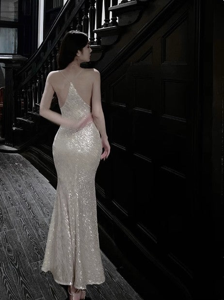 Silver Mermaid Spaghetti Strap Sequin Prom Dress Shimmer Evening Gown ED01753