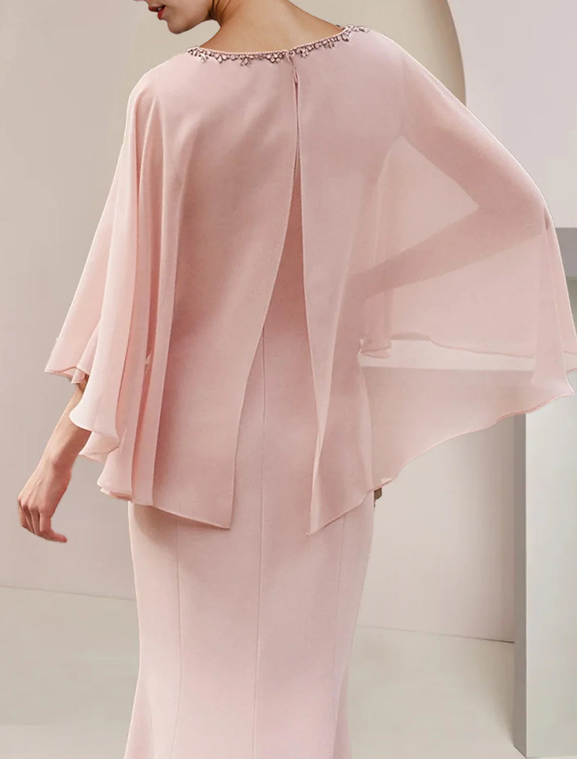 Mermaid / Trumpet Mother of the Bride Dress Formal Wedding Guest Party Vintage Elegant Scoop Neck Asymmetrical Tea Length Chiffon Sleeveless with Beading