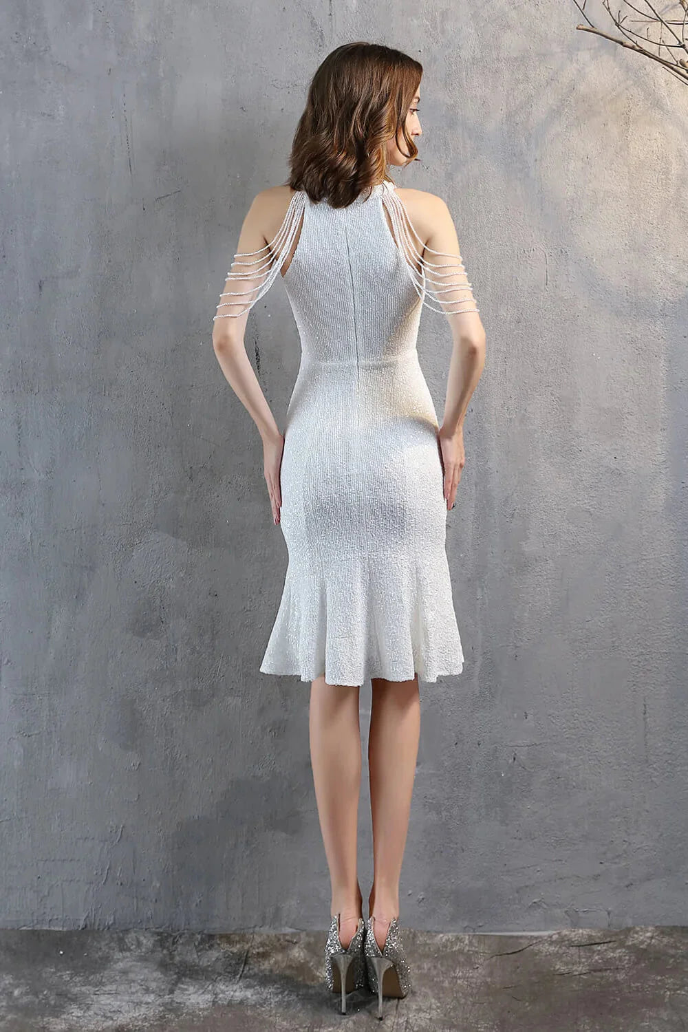 Modern Halter Mermaid Short Evening Dress Tassels Sequins Party Gowns