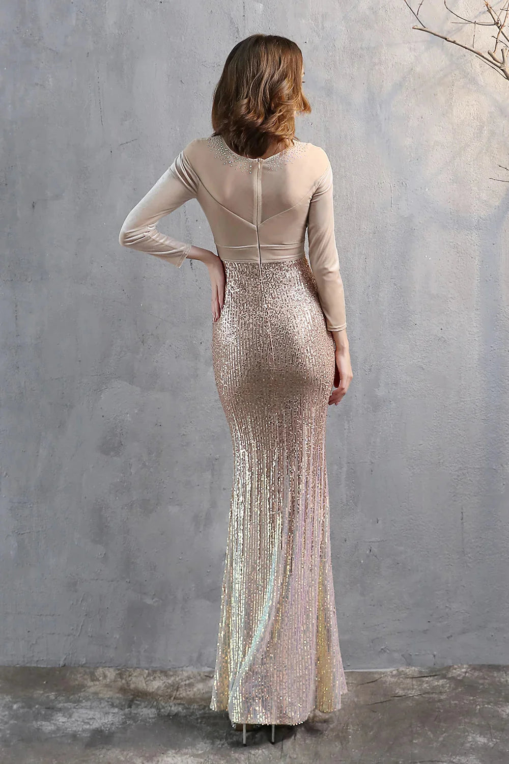 Modern Long Sleeves Illussion Neck Evening Dress Mermaid Sequins Long