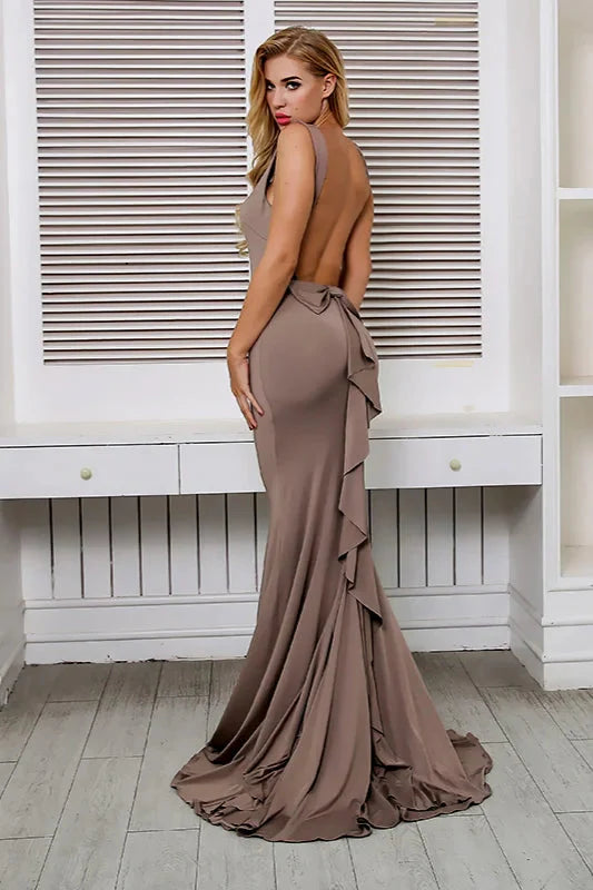 New Arrival Mermaid Backless Prom Dress Long Ruffles Evening Gowns Online