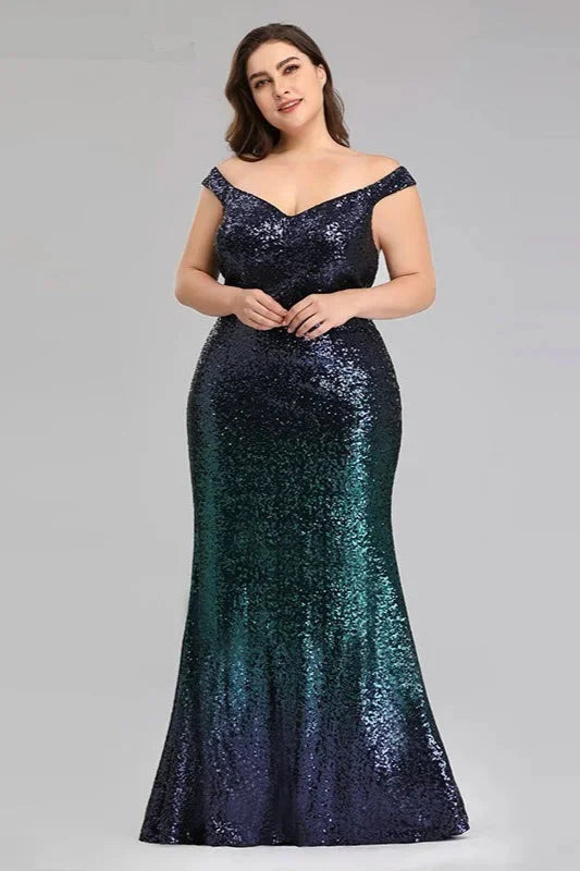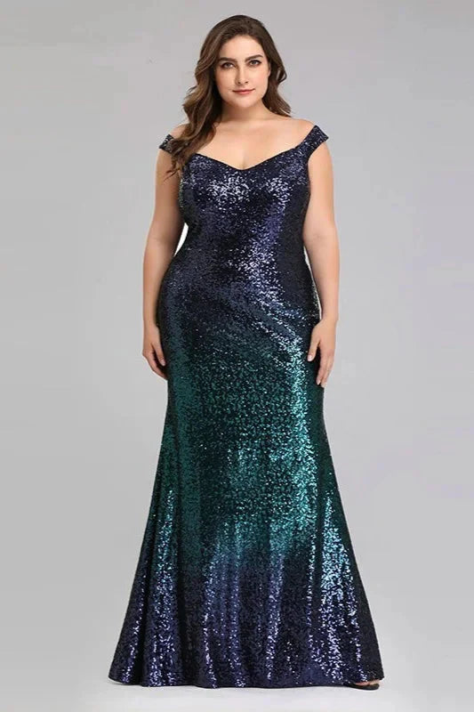 New Arrival Plus Size Prom Dress Sequins Mermaid Long Evening Gowns
