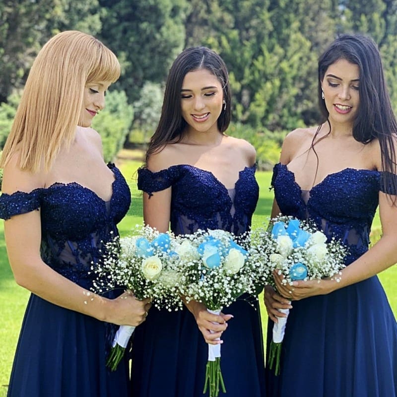 Off Shoulder Navy Blue Lace Beaded Prom Dresses, Navy Blue Lace Bridesmaid Dresses, Long Navy Blue Formal Graduation Evening Dresses
