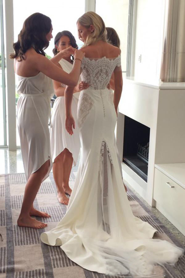 Off-the-Shoulder Trumpet/Mermaid Lace Wedding Dress